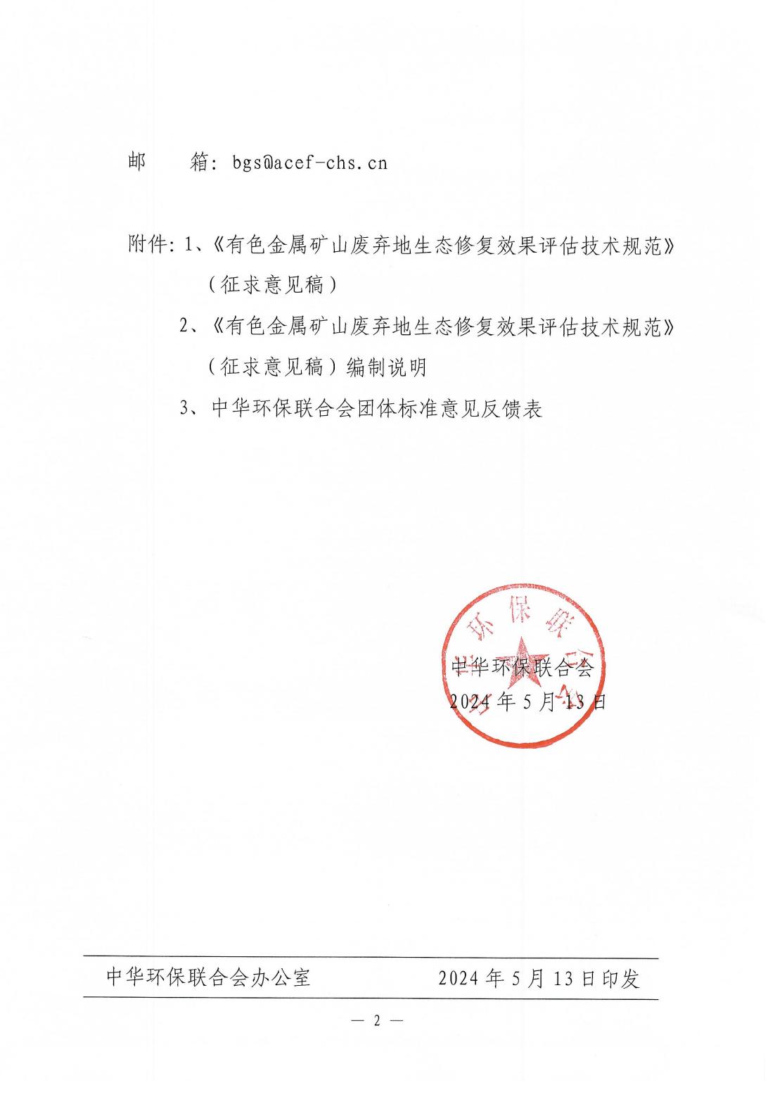 关于《有色金属矿山废弃地生态修复效果评估技术规范》团体标准征求意见的函