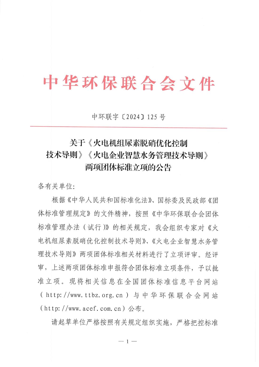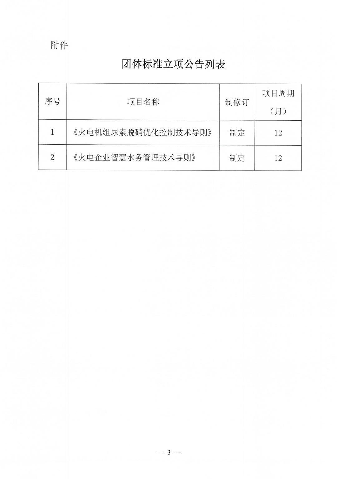 关于《火电机组尿素脱硝优化控制技术导则》《火电企业智慧水务管理技术导则》两项团体标准立项的公告