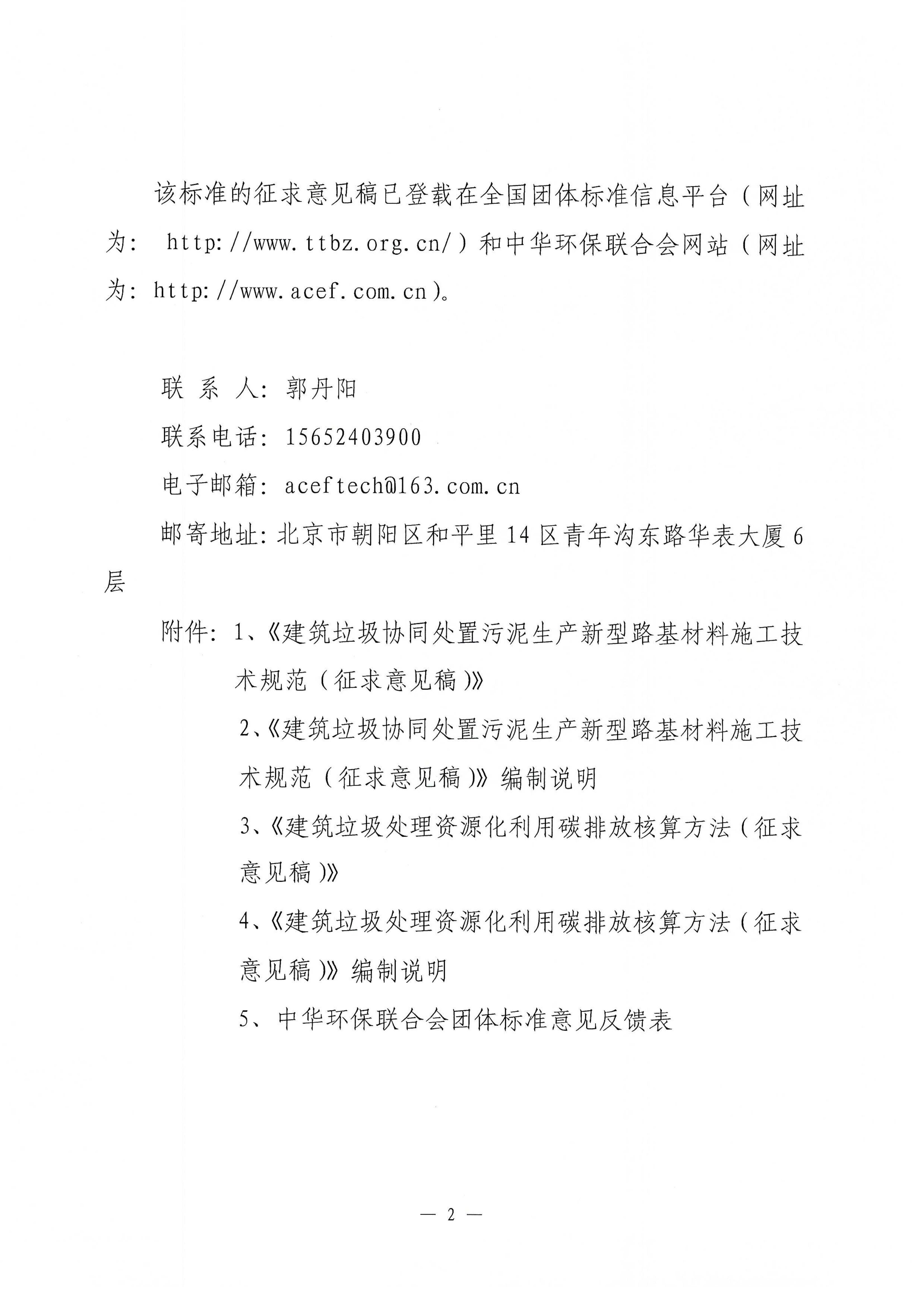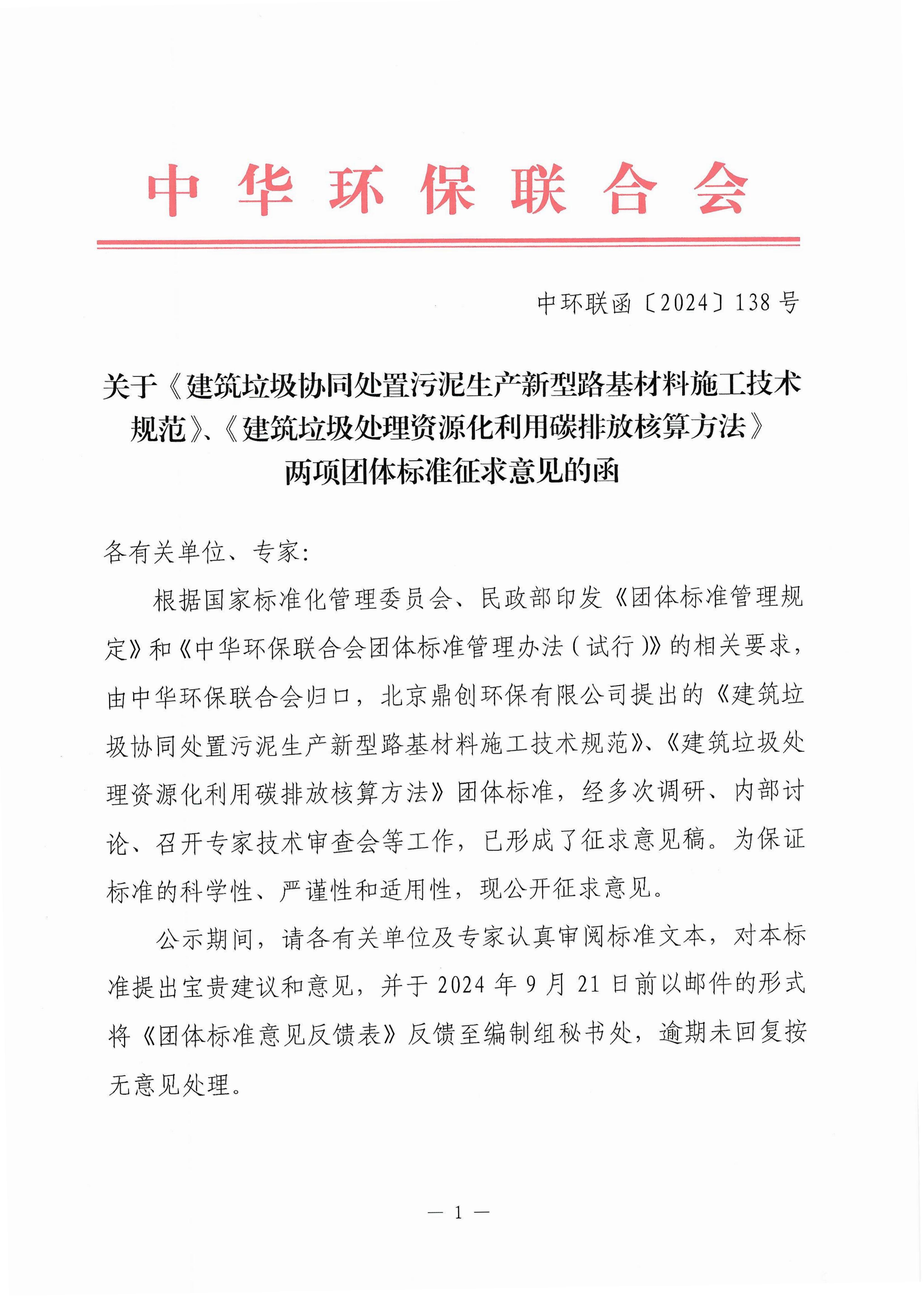 关于《建筑垃圾协同处置污泥生产新型路基材料施工技术规范》、《建筑垃圾处理资源化利用碳排放核算方法》两项团体标准征求意见的函