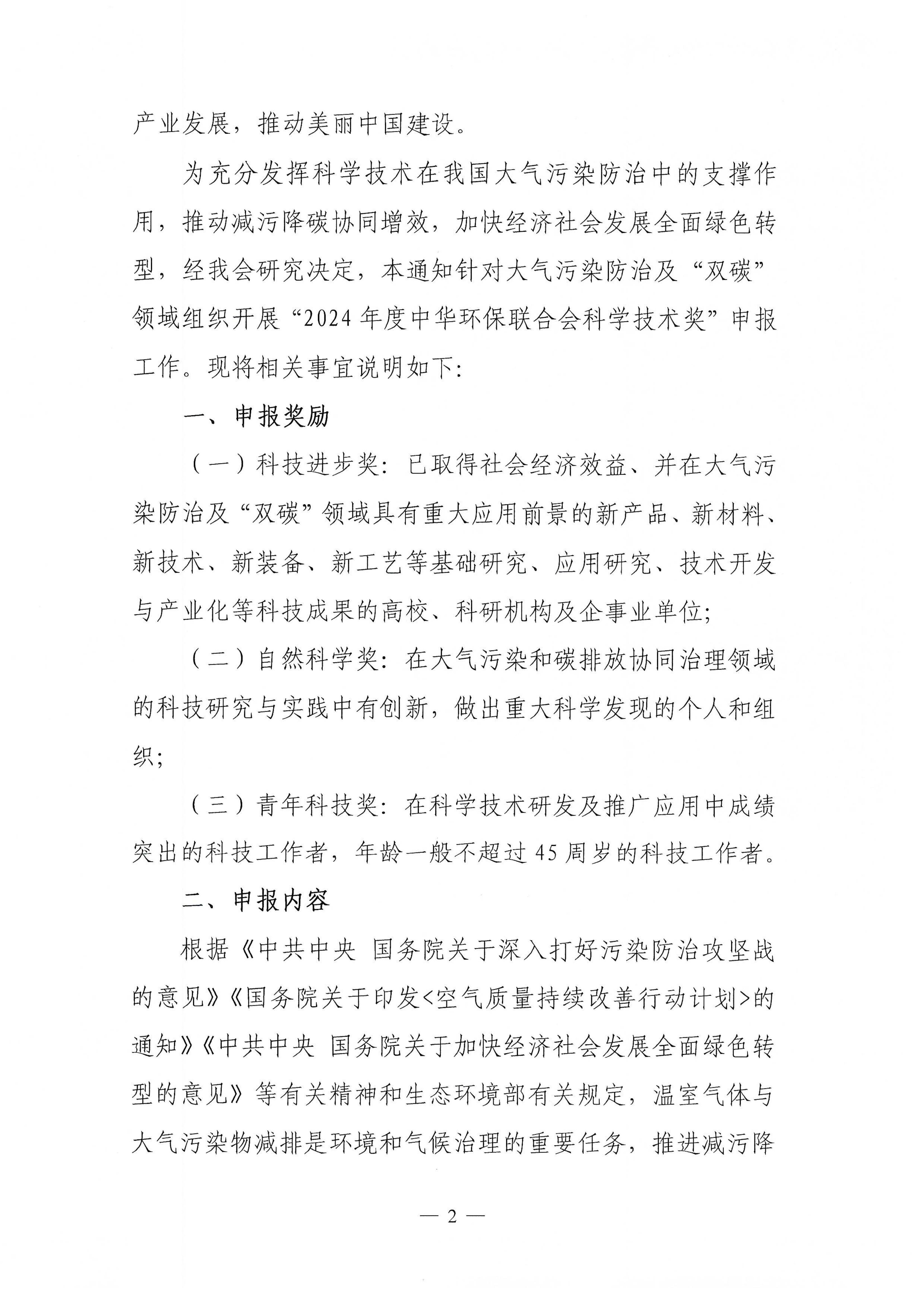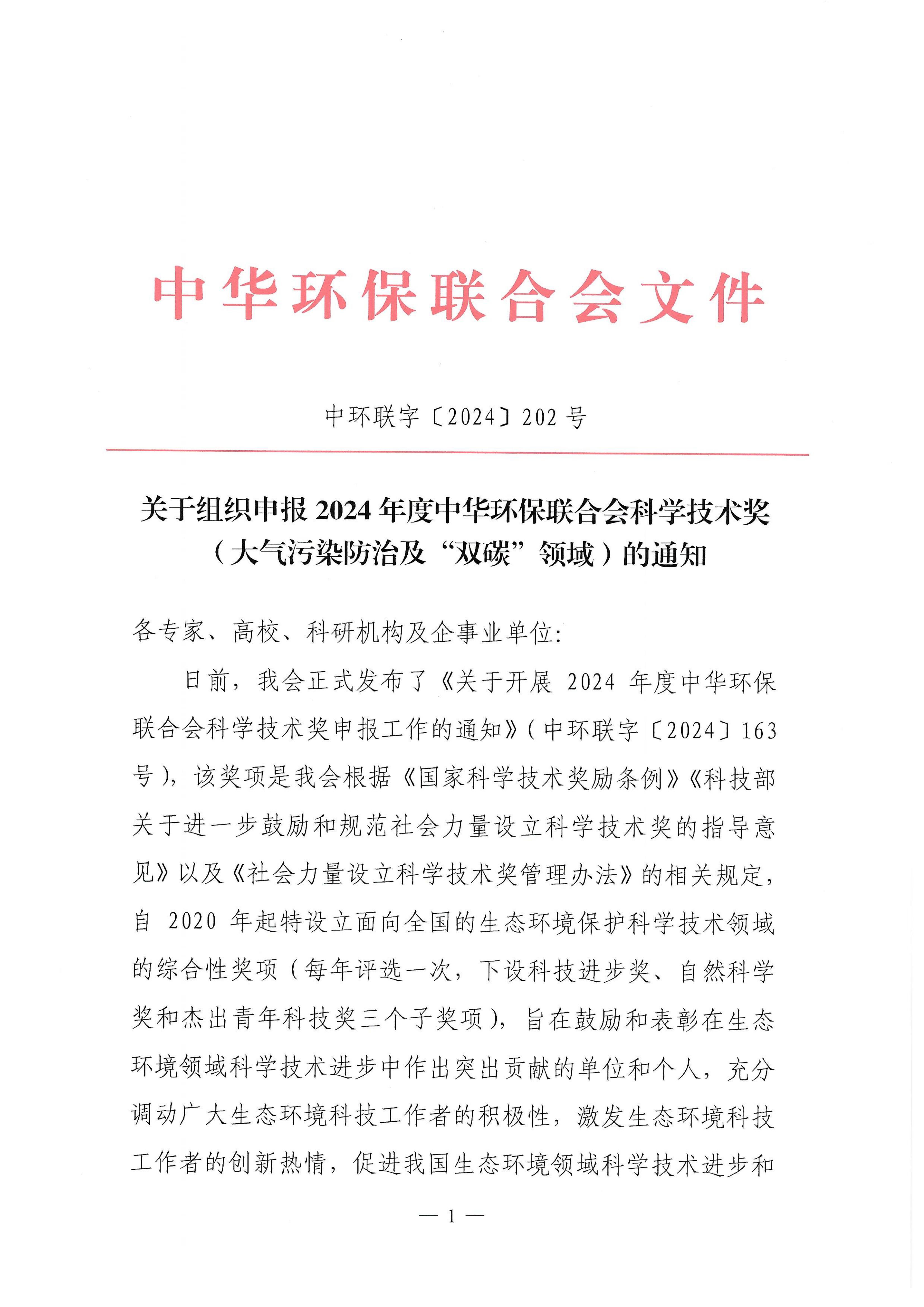关于组织申报2024年度天博科学技术奖(大气污染防治及“双碳”领域)的通知