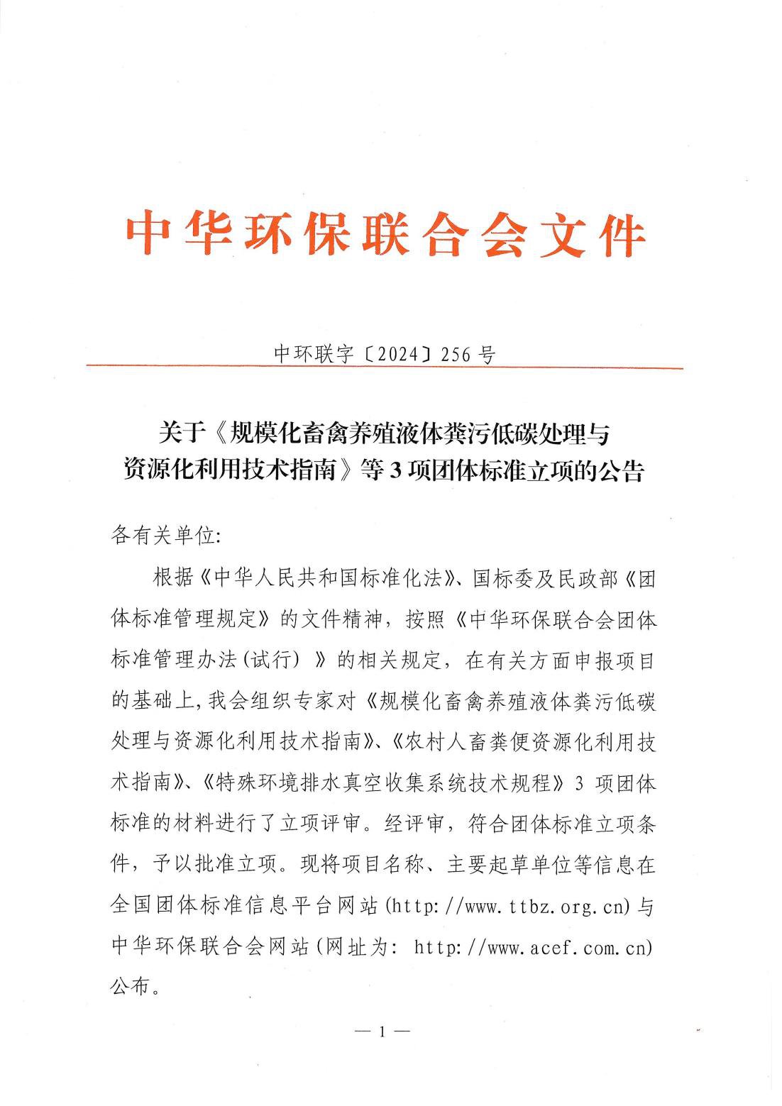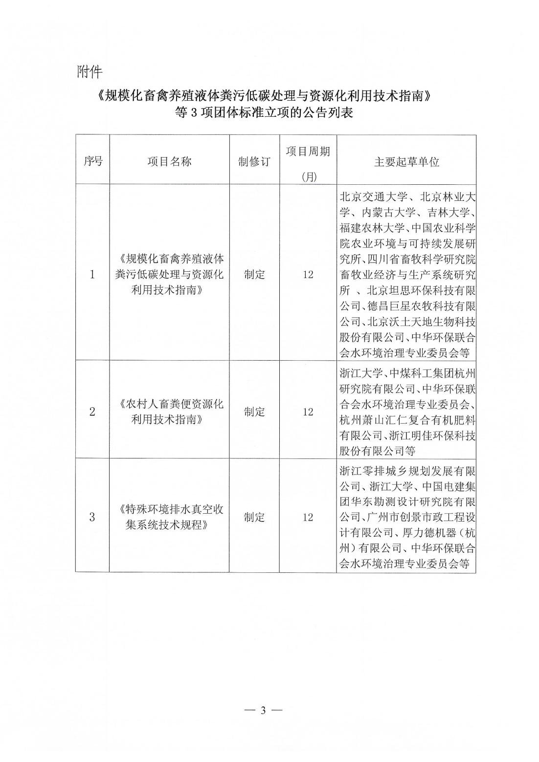 关于《规模化畜禽养殖液体粪污低碳处理与资源化利用技术指南》等3项团体标准的立项公告