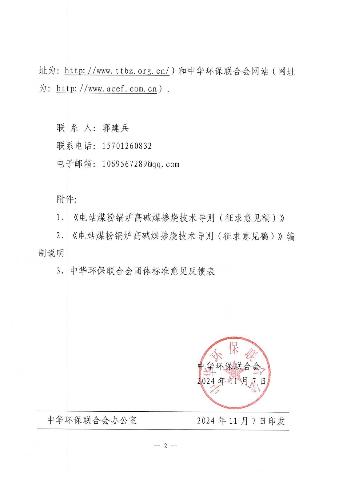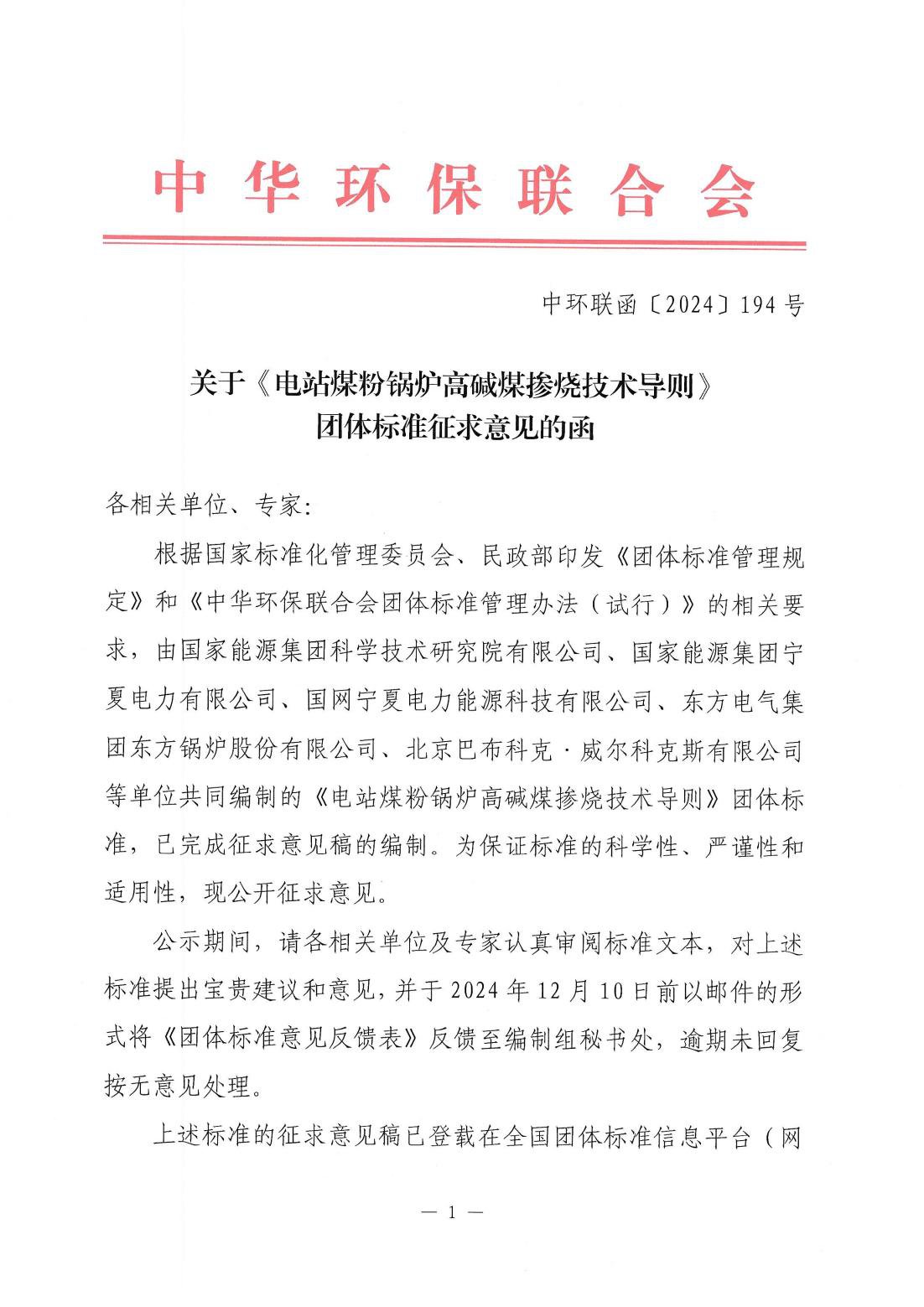 关于《电站煤粉锅炉高碱煤掺烧技术导则》团体标准征求意见的函