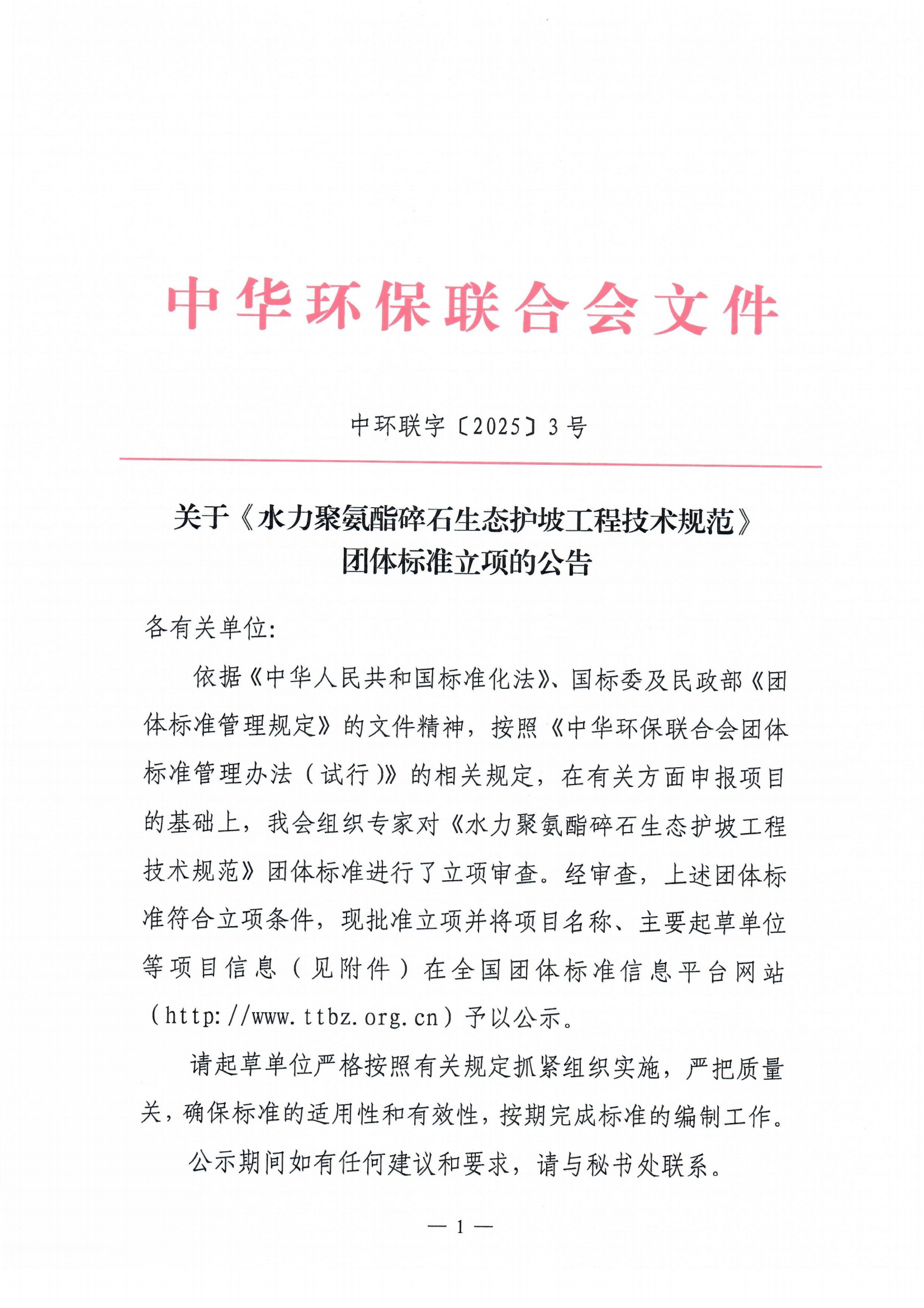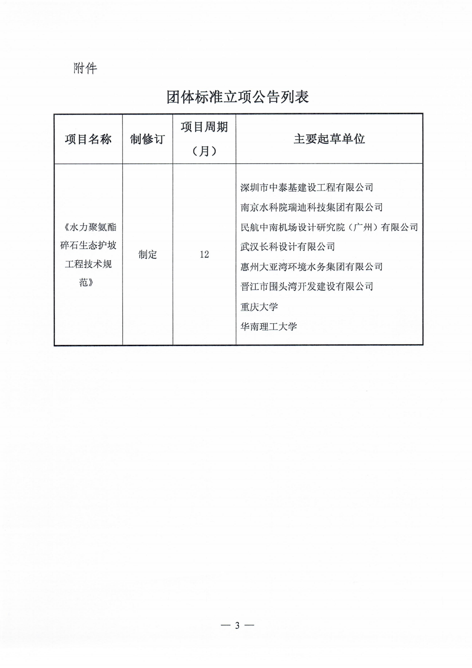 关于《水力聚氨酯碎石生态护坡工程技术规范》团体标准立项的公告