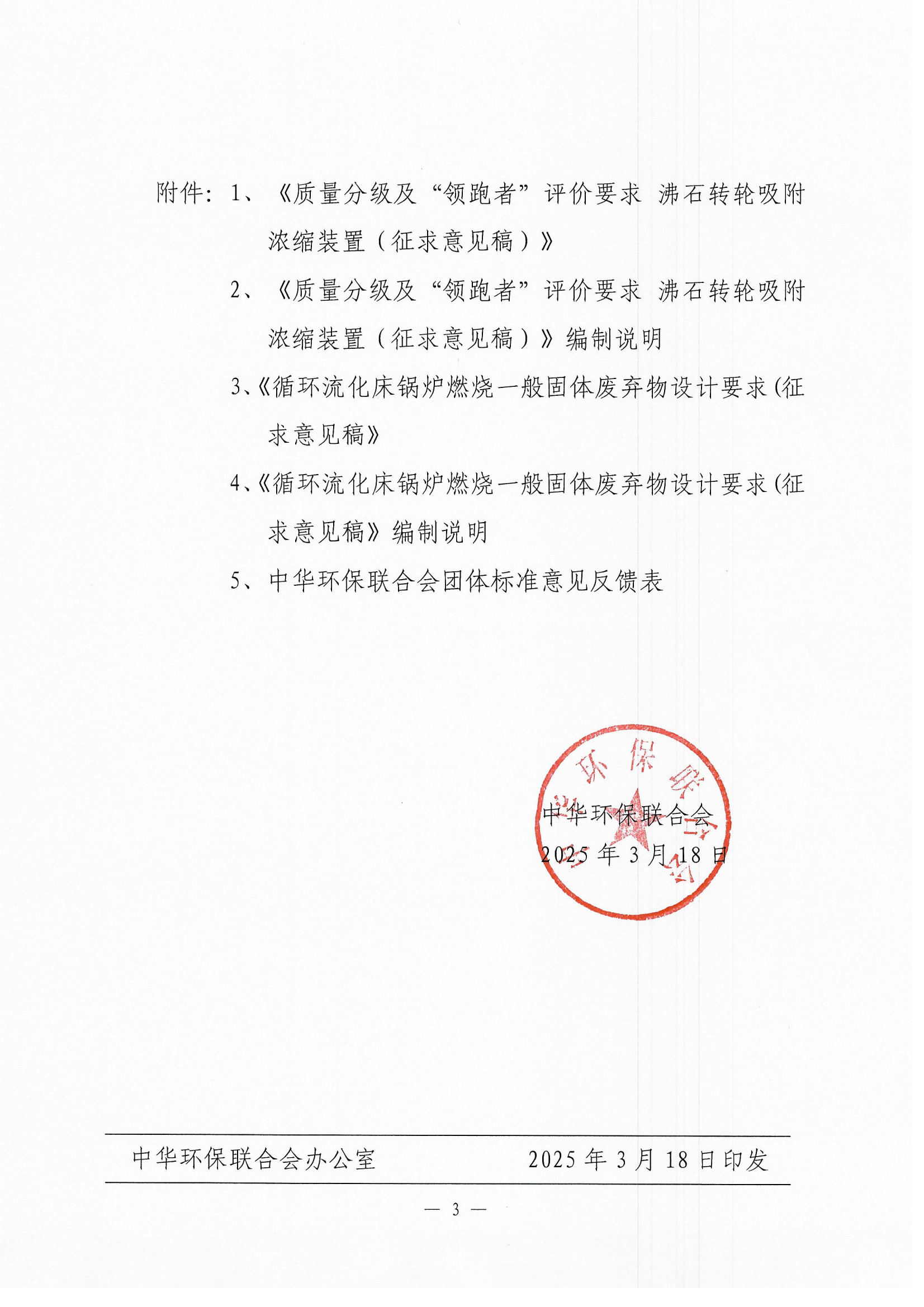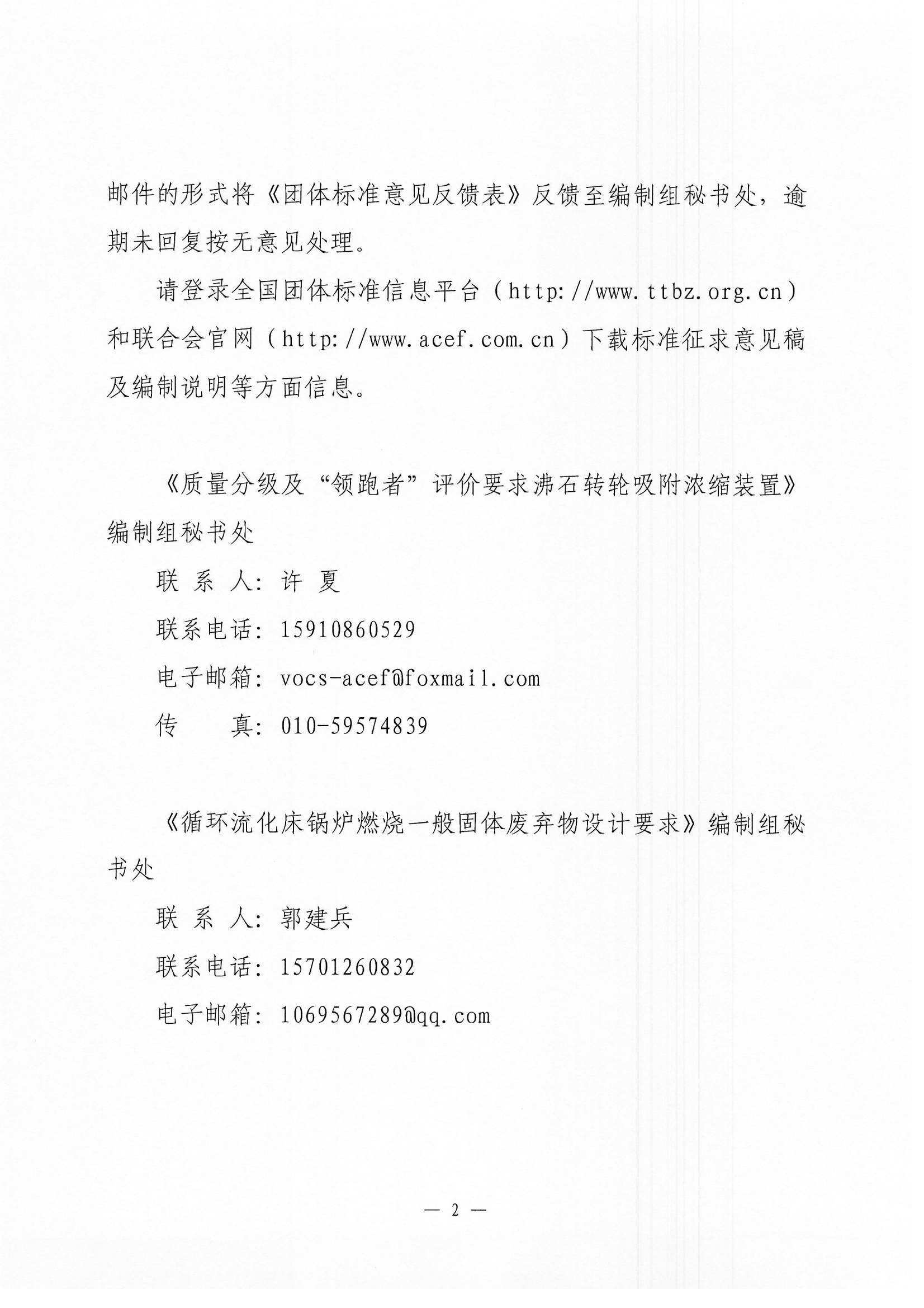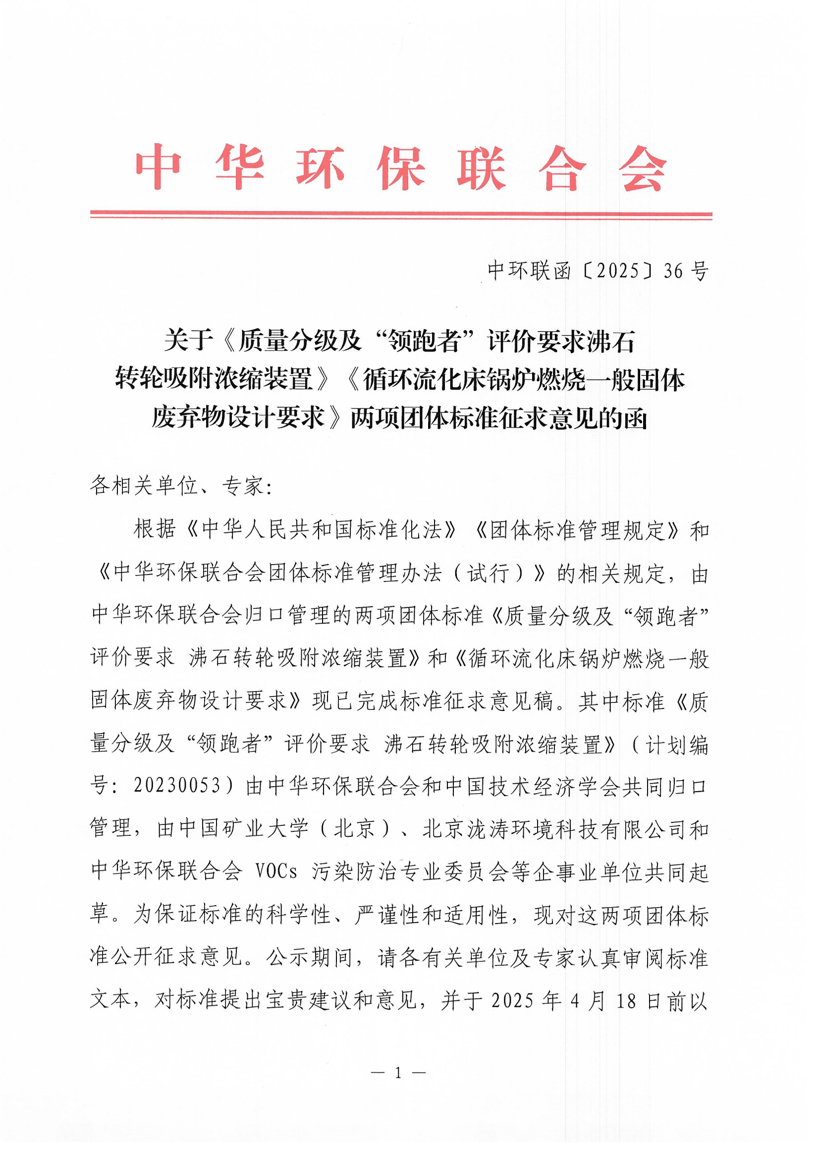 关于《质量分级及“领跑者”评价要求沸石转轮吸附浓缩装置》《循环流化床锅炉燃烧一般固体废弃物设计要求》两项团体标准征求意见的函