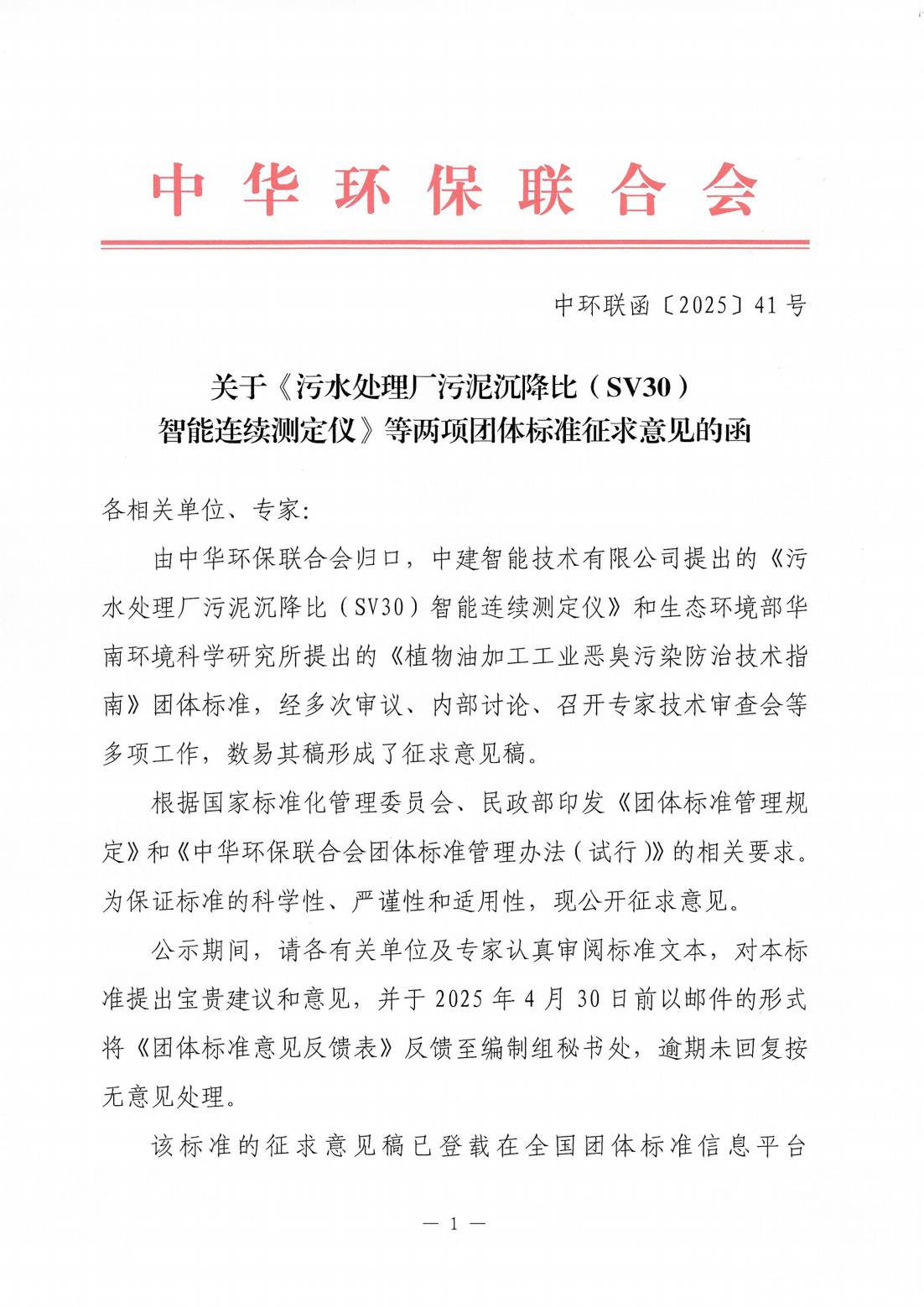 1、《污水处理厂污泥沉降比(SV30)智能连续测定仪(征求意见稿)》 |
