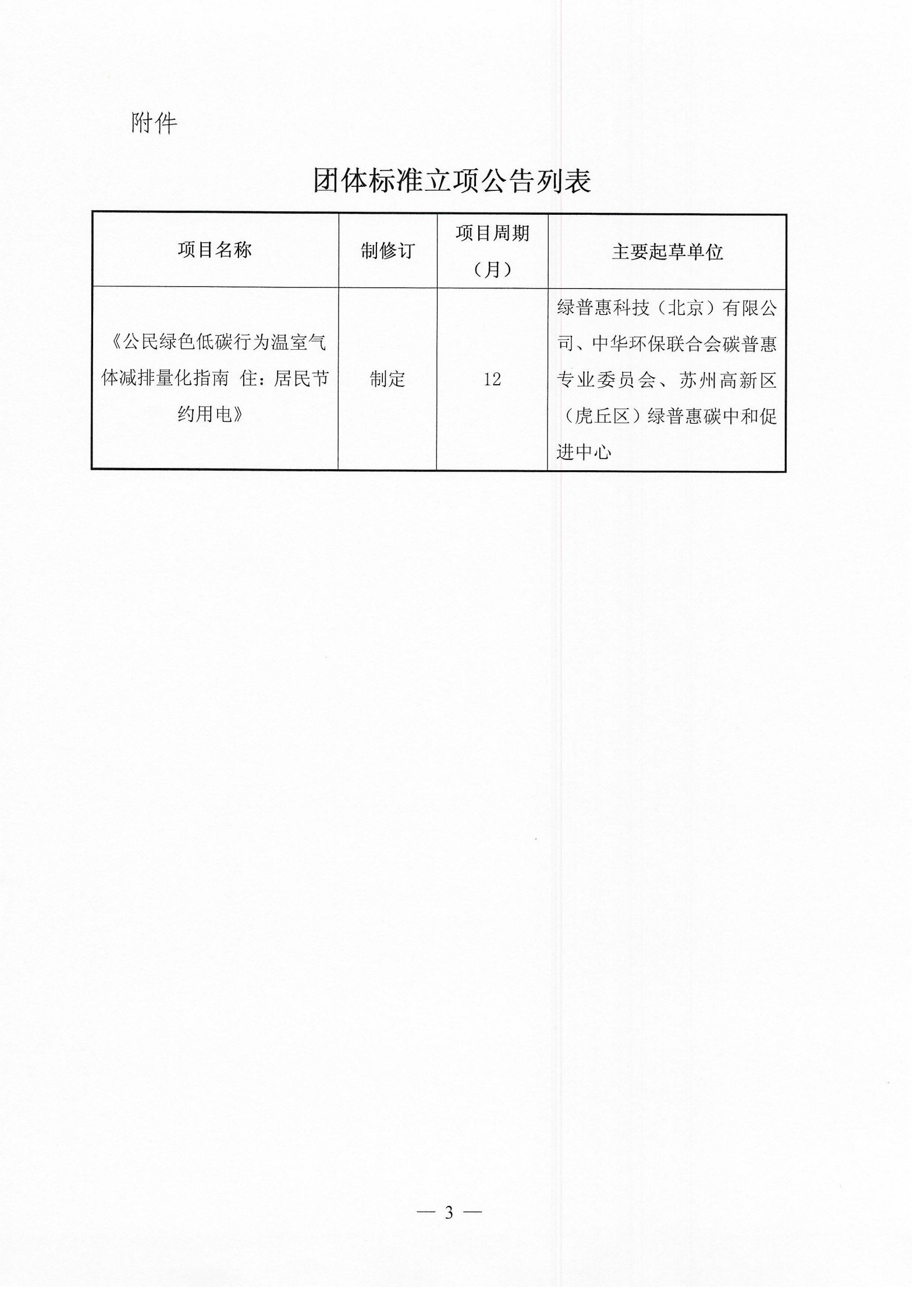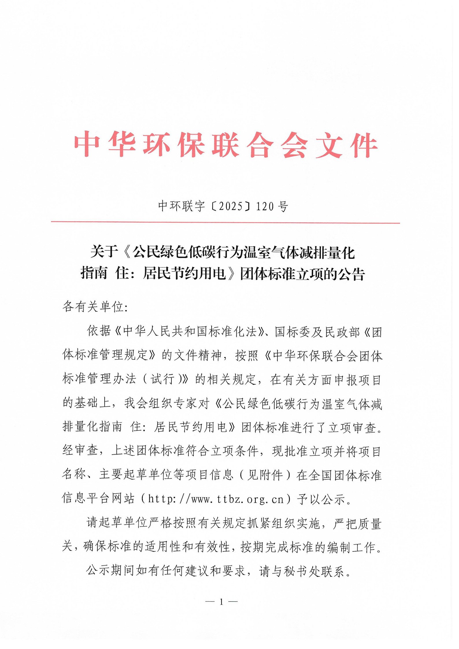 关于《公民绿色低碳行为温室气体减排量化指南 住:居民节约用电》团体标准立项的公告