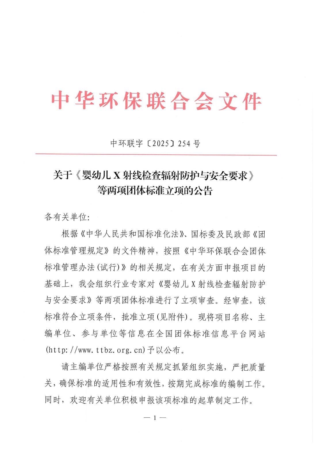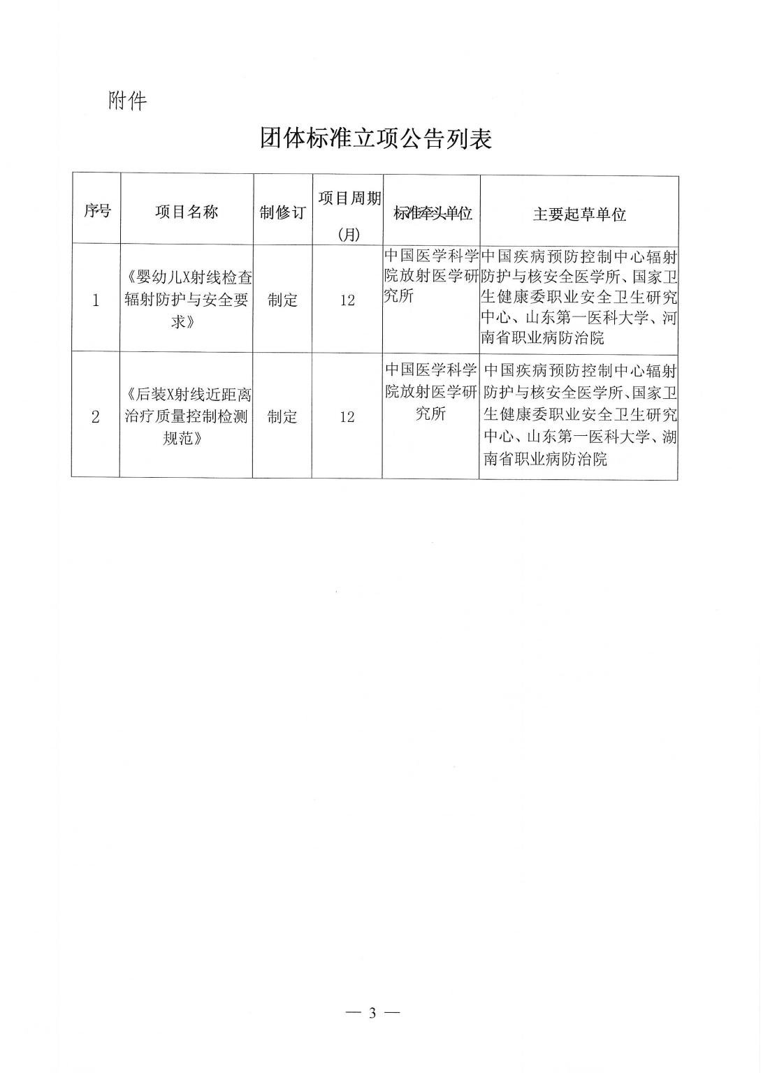 关于《婴幼儿X射线检查辐射防护与安全要求》等两项团体标准立项的公告