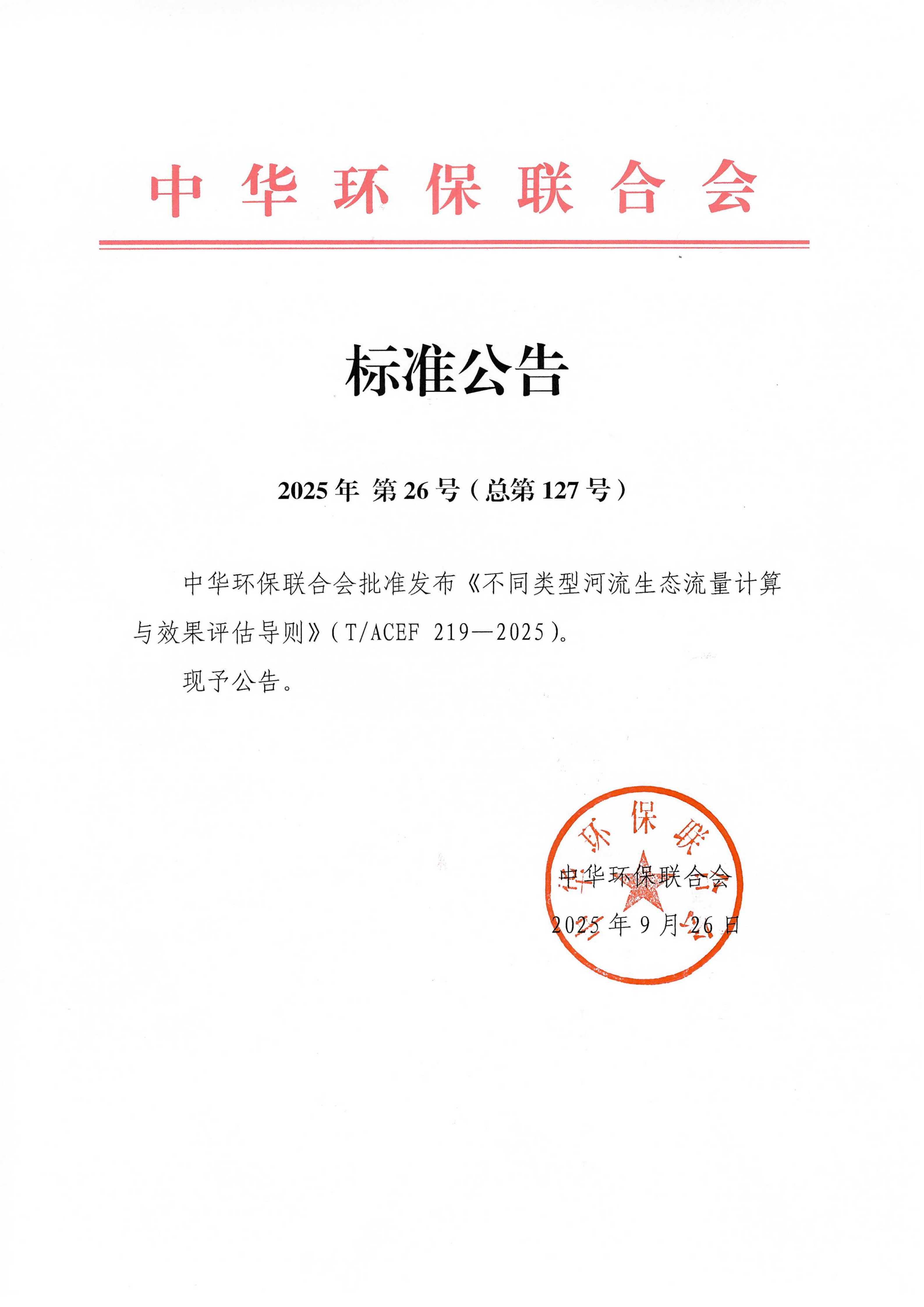团体标准《不同类型河流生态流量计算与效果评估导则》发布的公告