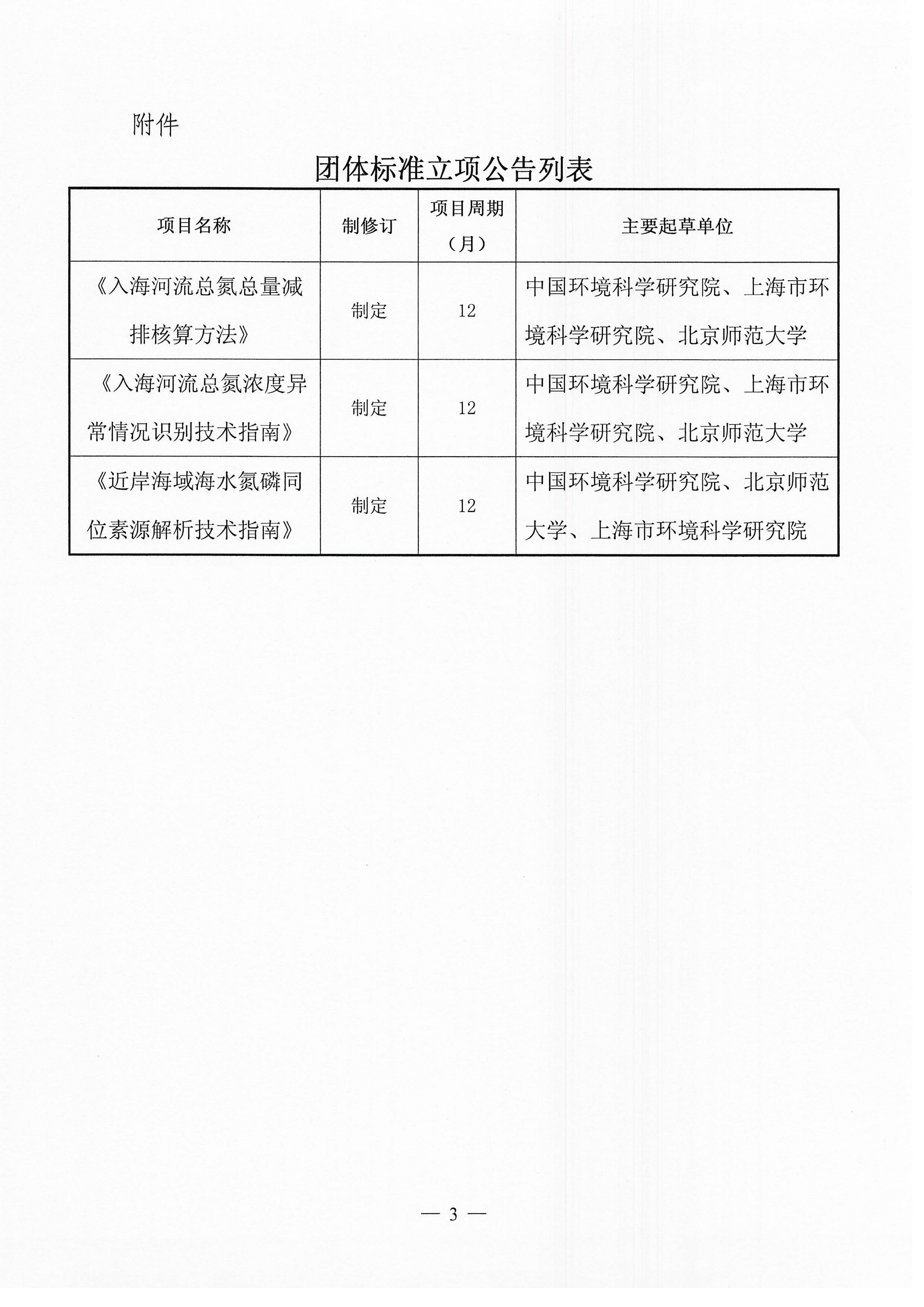 关于《入海河流总氮总量减排核实方法》等三项团体标准立项的公告