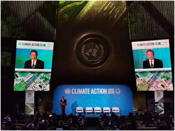 图1 习近平主席特别代表、国务委员兼外交部长王毅在气候行动峰会现场发言