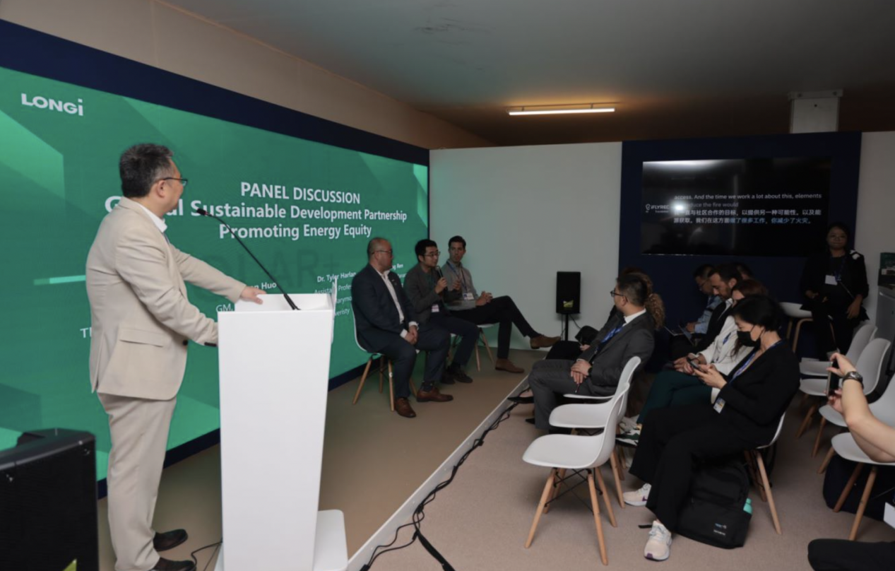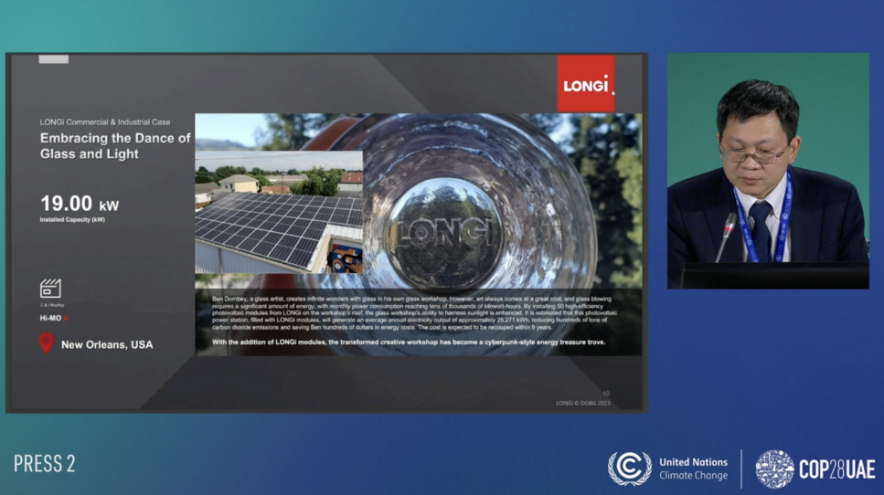 围绕低碳转型与气候传播,天博于12月5日联合国气候大会官方新闻发布间,邀请来自隆基绿能和能源基金会的代表,通过现场交流和直播的方式分享了中国光伏领域、民间组织气候传播领域的前沿实践。