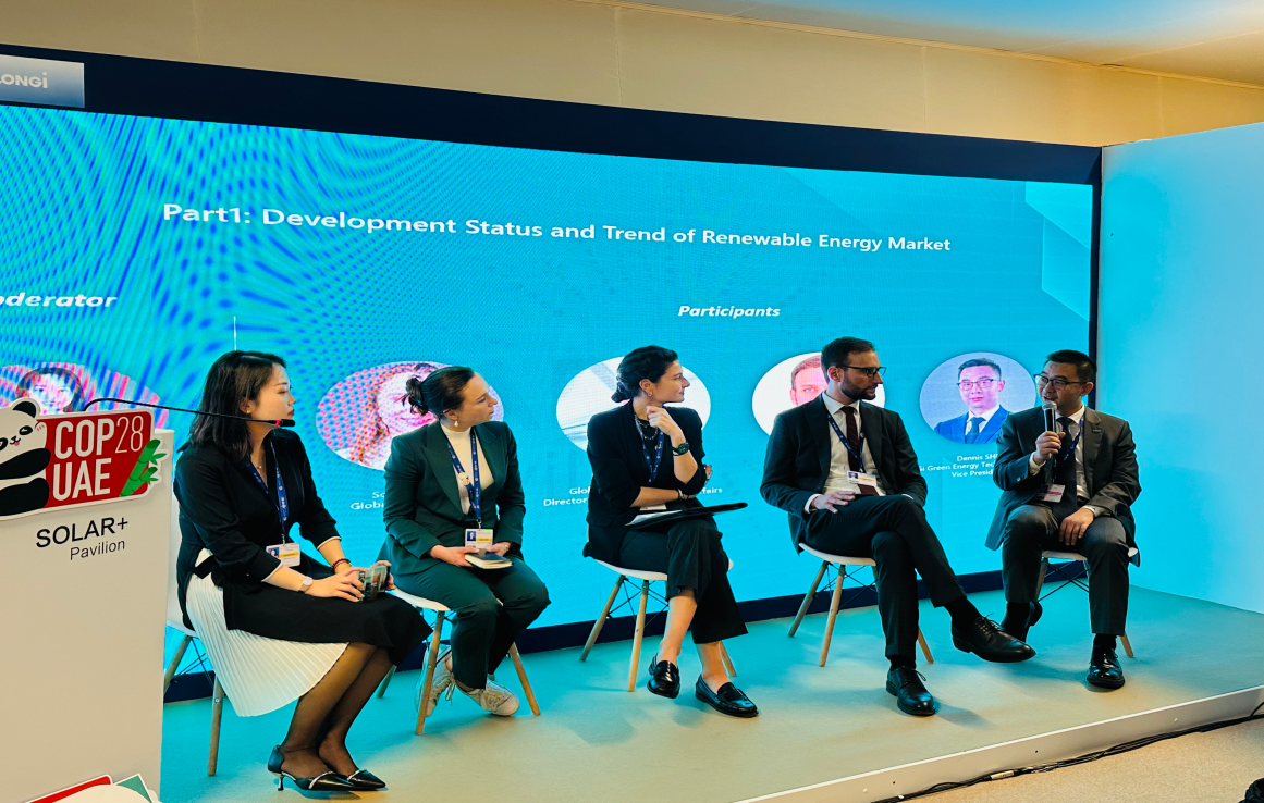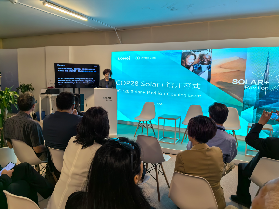 Solar+馆开幕式——11月30日,气候大会开幕日当天,谢玉红秘书长出席联合会COP28独立场馆“Solar+馆”开幕式并致辞,为与会来宾分享天博大中华、大环境、大联合的理念,以及与隆基绿能共同建设Solar+馆、推动光伏全面助力联合国可持续发展目标的思路。开幕仪式上,腾讯集团、北京排水集团以及来自美洲、欧洲、非洲的国际嘉宾,围绕光伏助力可持续发展主题,分享了各自的探索和实践。