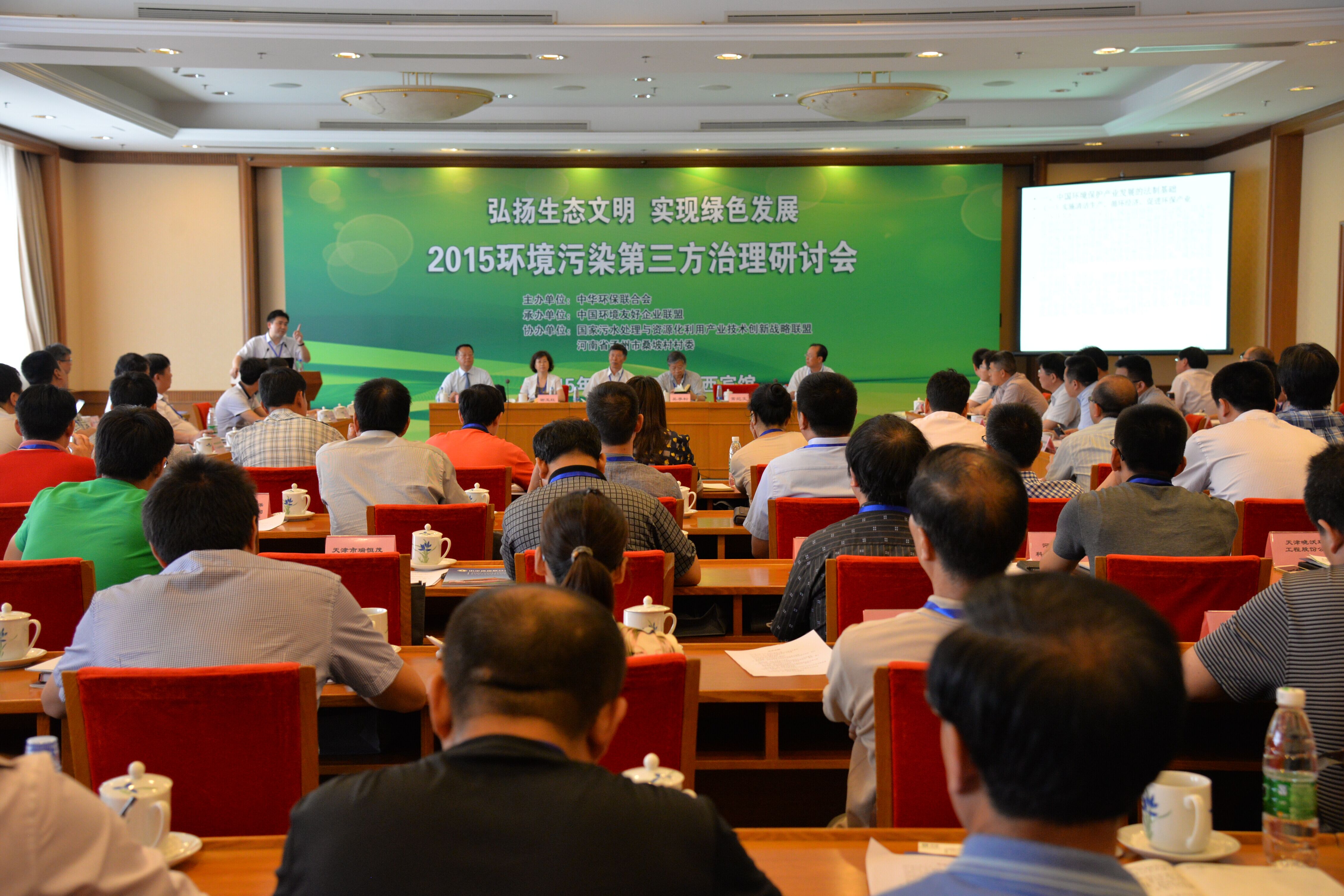 为了深入贯彻党中央十八届三中、四中全会精神,积极推进“环境污染第三方治理”,6月17日,天博、中国环境友好企业联盟在京西宾馆组织召开了“环境污染第三方治理研讨会”。