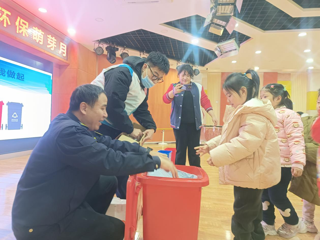 通过趣味宣讲、实践互动,引导孩子们争做环保小卫士,带动家庭、社区共建绿色家园。 分类志愿者用生动有趣的卡通动画和实物道具,为孩子们讲解垃圾分类知识。“电池是什么垃圾?”“过期药片要丢哪里?”孩子们踊跃提问,工作人员耐心解答,课堂充满欢声笑语。