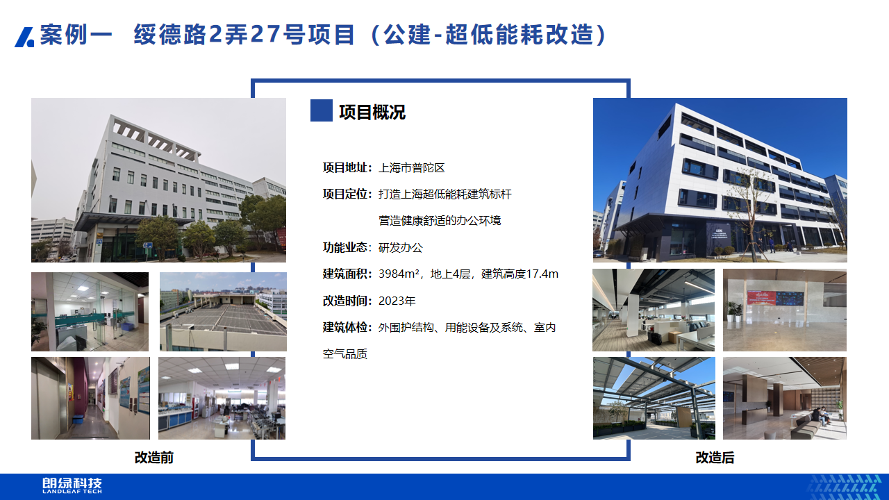 朗绿科技作为建筑科技行业“碳”路者,积极探索实现建筑行业“碳中和”目标的技术路径,包括被动式超低能耗建筑技术、超高能效设备系统、智慧管理运维体系以及新能源、可再生能源应用,加强绿色低碳建筑、超低能耗建筑、零碳建筑、既有建筑绿色化改造、智慧平台运维等领域的技术研发,以绿色科技助力既有建筑绿色改造。