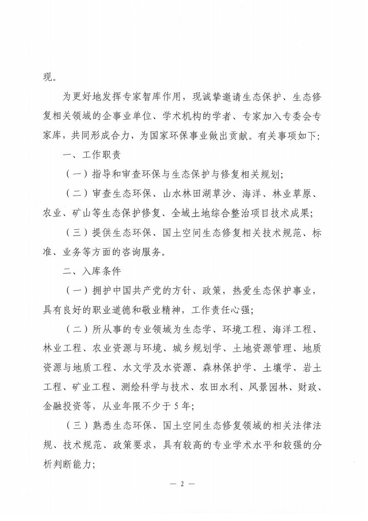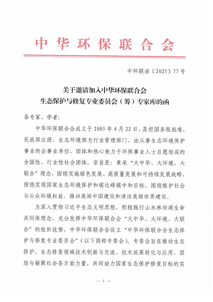 关于邀请加入天博生态保护与修复专业委员会(筹)专家库的函