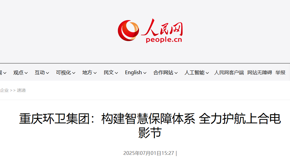 7月1日人民网、华龙网聚焦重庆环卫集团全力做好2025年上合组织国家电影节期间环境卫生保障工作进行报道一起来看详细内容↓↓↓