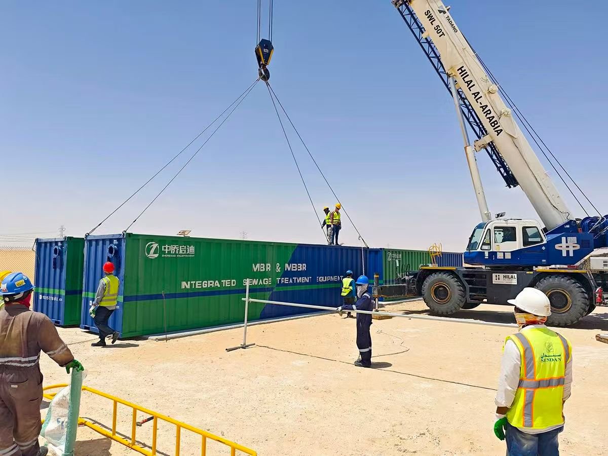 近日,中侨启迪自主研发的一体化污水处理设备发往沙特阿拉伯,并顺利完成安装。