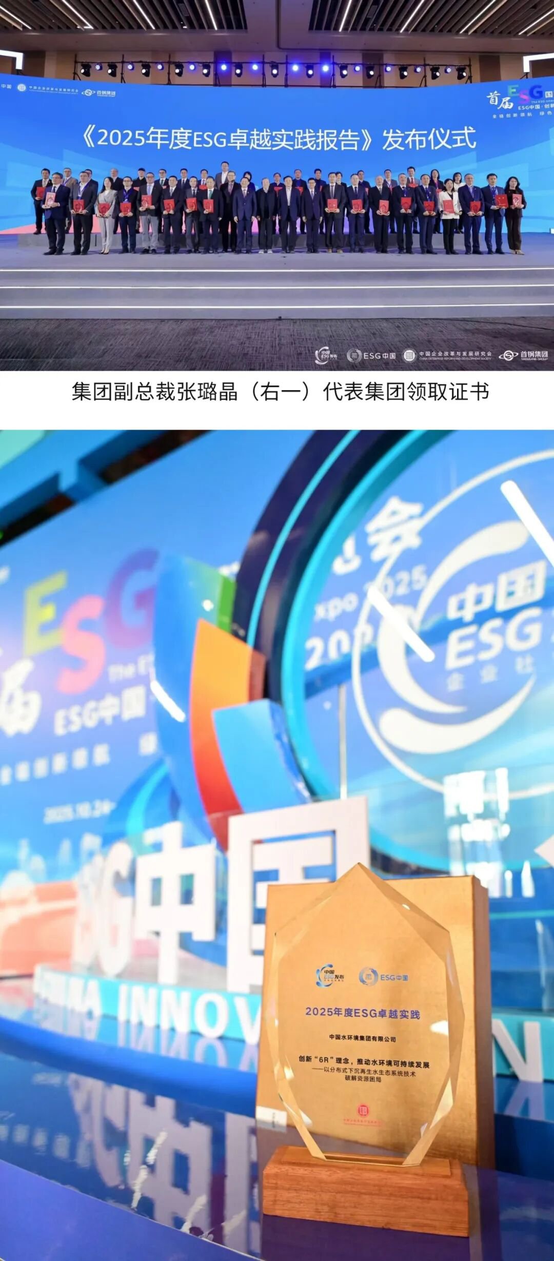 近日,ESG中国·创新年会(2025)暨首届ESG国际博览会在北京首钢园召开。大会正式发布了《2025年度ESG卓越实践报告》,中国水环境集团凭借《创新“6R”理念,推动水环境可持续发展——以分布式下沉再生水生态系统技术破解资源困局》案例从213家申报企业中脱颖而出,与中核集团、中国移动、华润集团、浦发银行、京东、腾讯等36家知名企业入选,为更多中国企业走向可持续发展道路提供了实践样板。