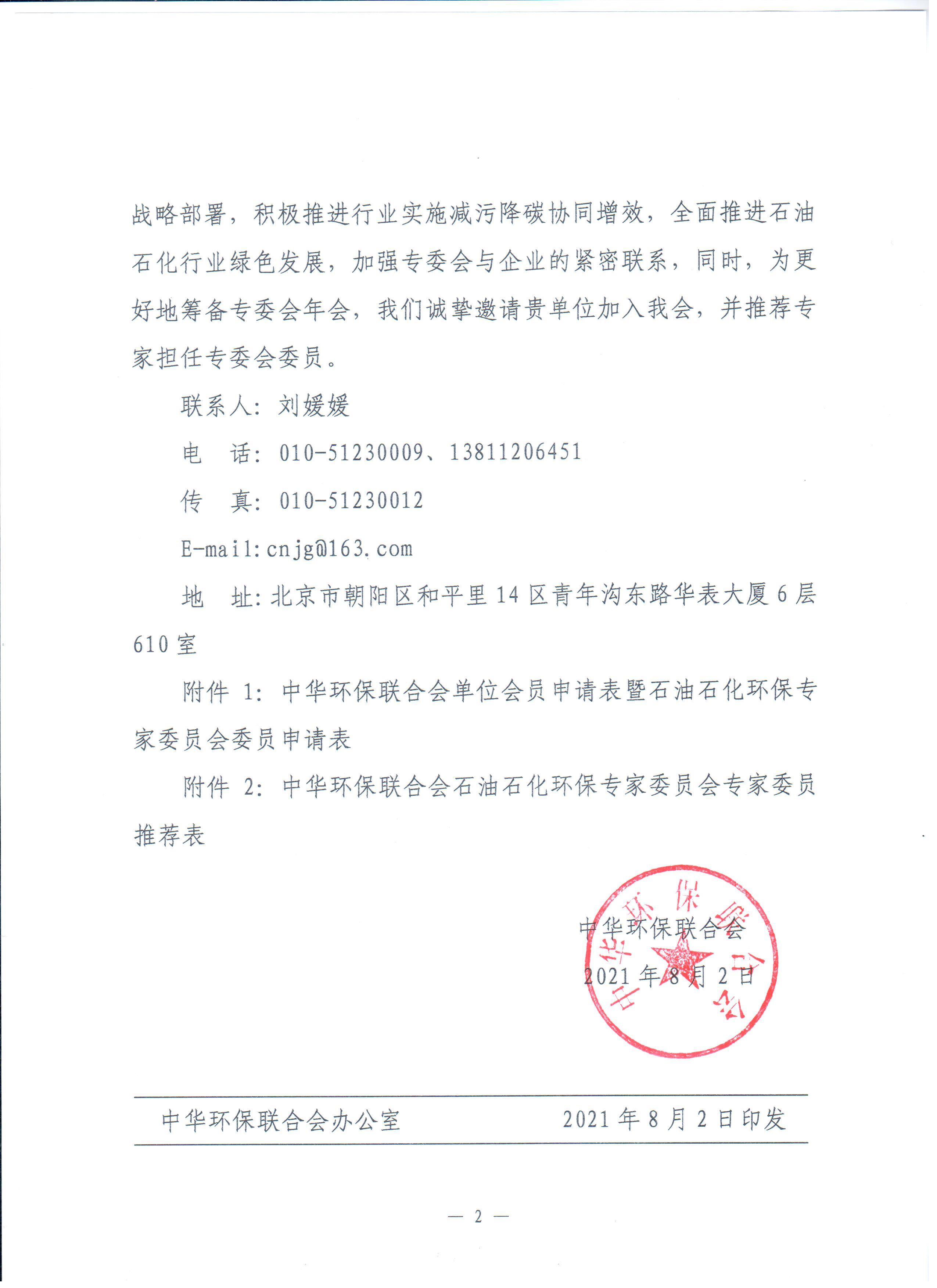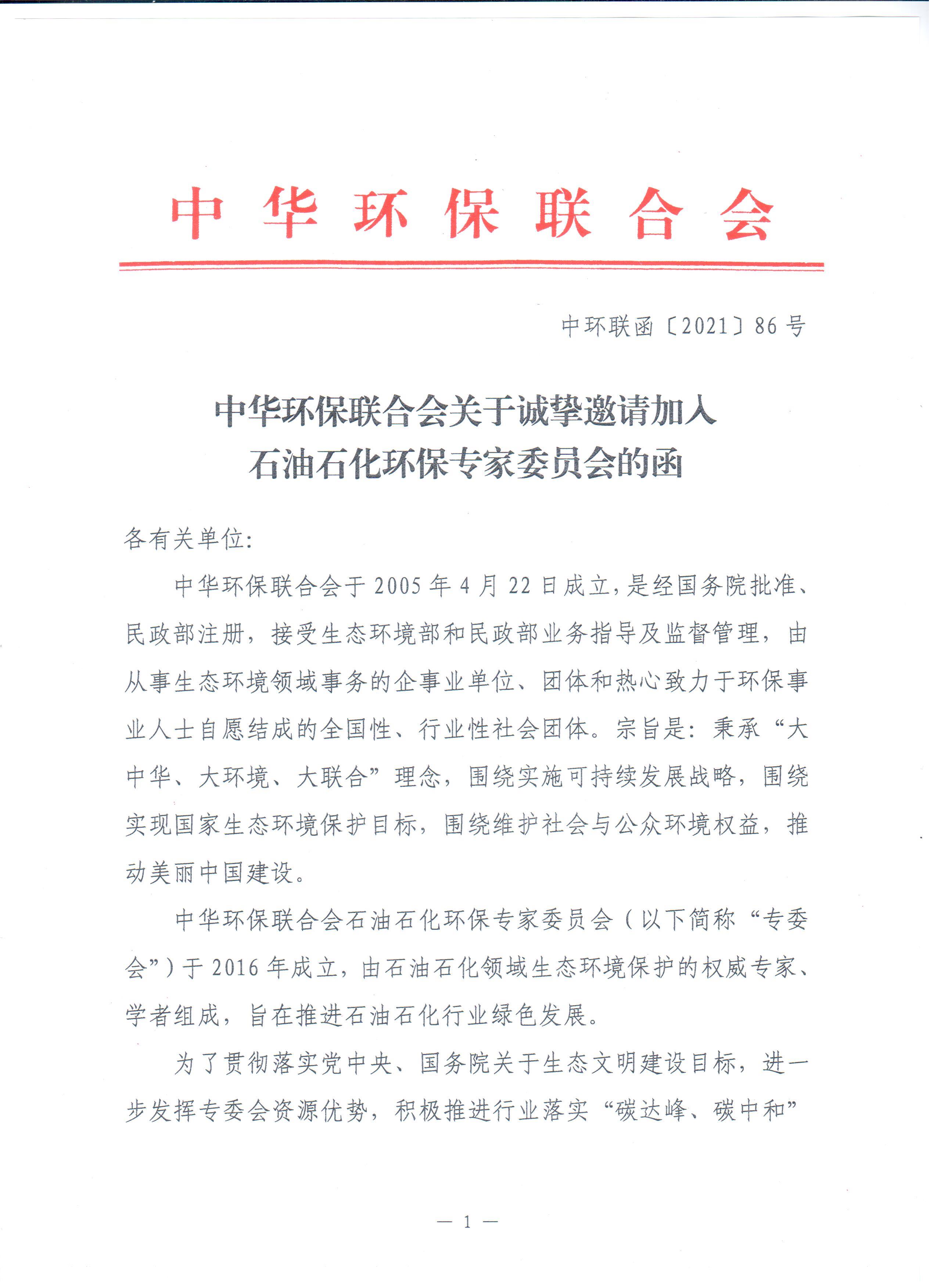 关于诚挚邀请加入天博石油石化环保专家委员会的函