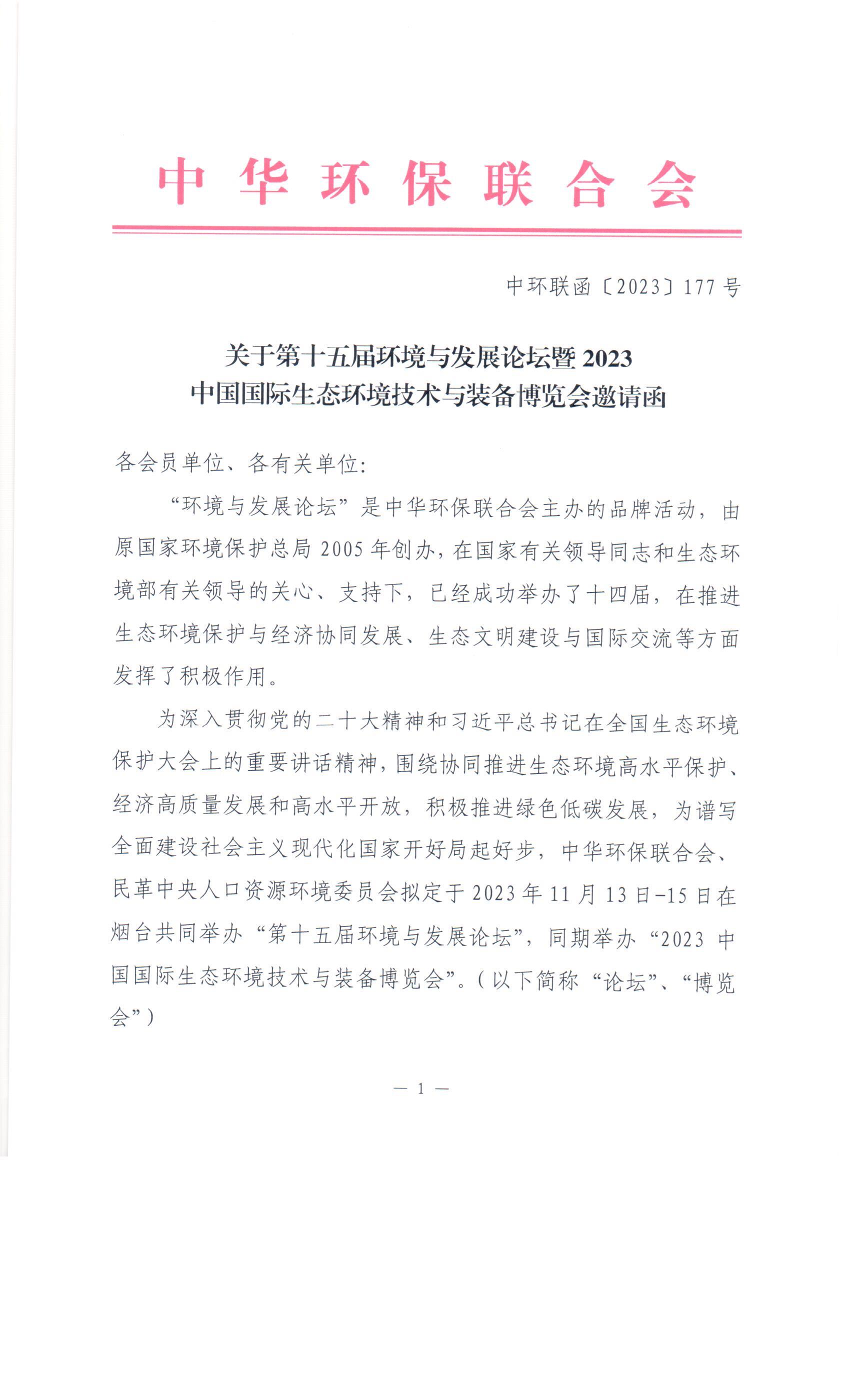 关于第十五届环境与发展论坛暨2023中国国际生态环境技术与装备博览会邀请函
