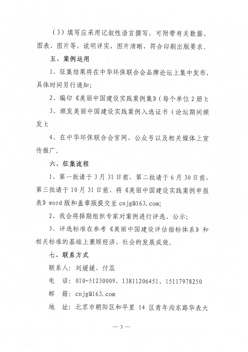 1、第一批请于3月31日前,第二批请于6月30日前,第三批请于10月31日前,将《美丽中国建设实践案例申报表》word版和盖章版提交至cnjg@163.com;