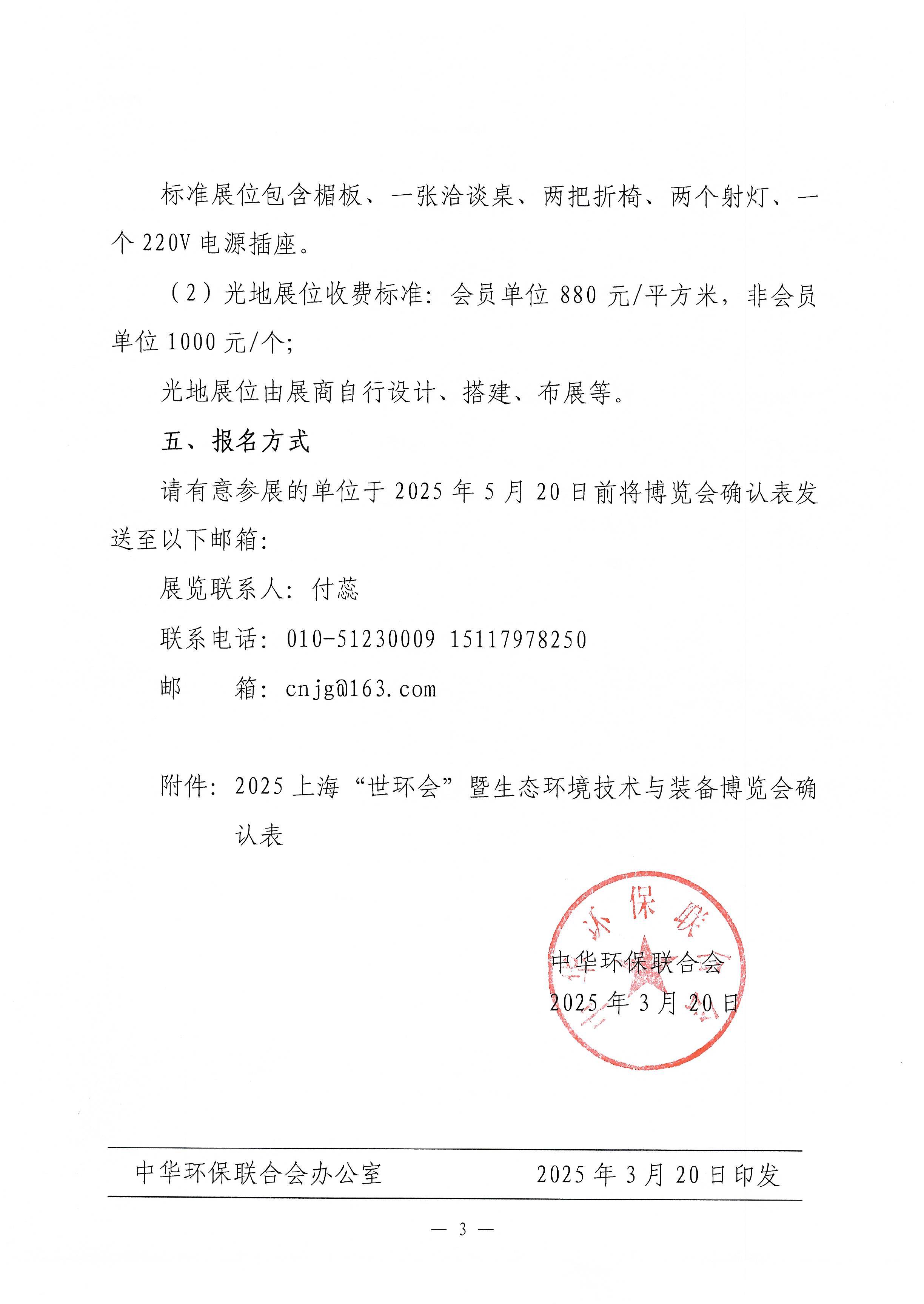 附件:2025上海“世环会”暨生态环境技术与装备博览会确认表