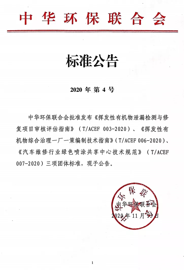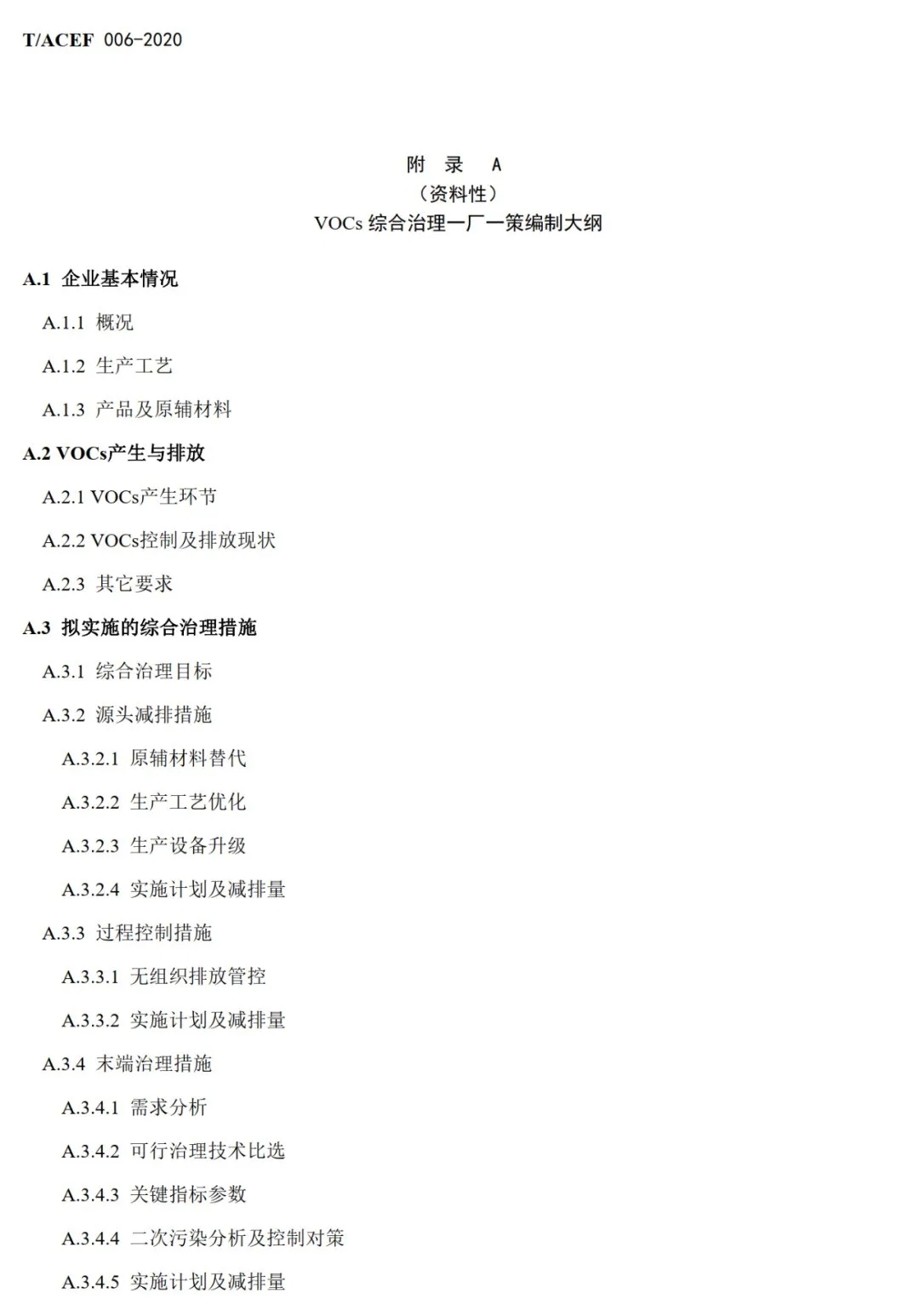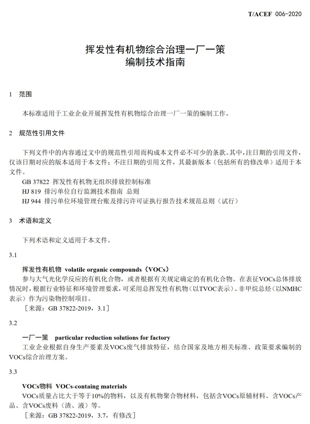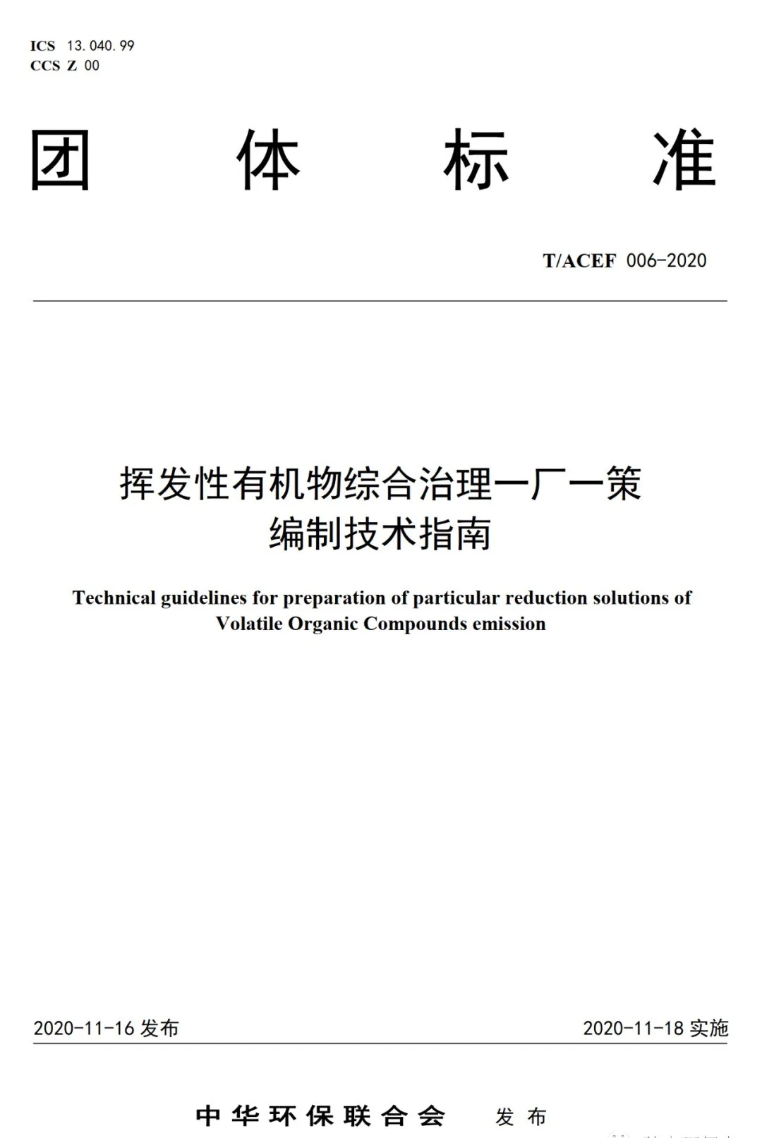 日前,《挥发性有机物综合治理一厂一策编制技术指南》(T/ACEF 006-2020)于2020年11月16日经天博批准发布,自2020年11月18日起实施。
