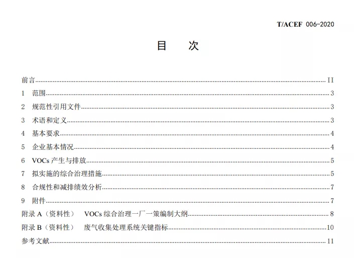 本标准主要技术内容包括:基本要求、VOCs产生与排放、拟实施的综合治理措施、 合规性和减排绩效分析。