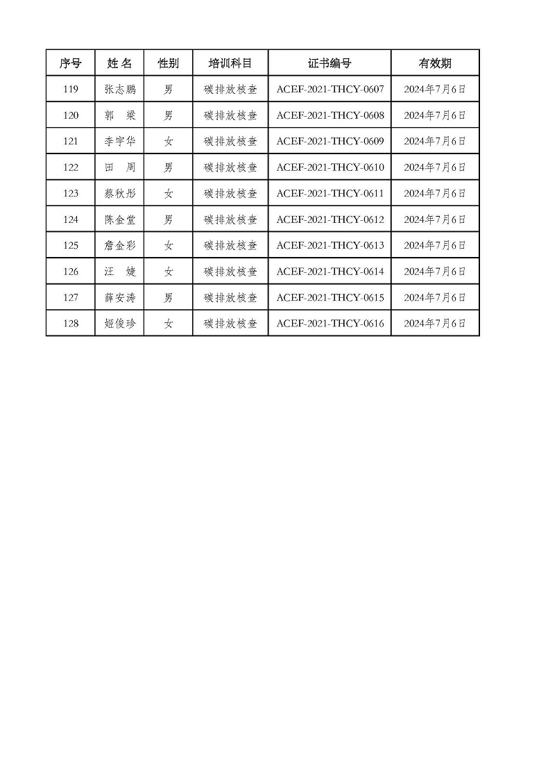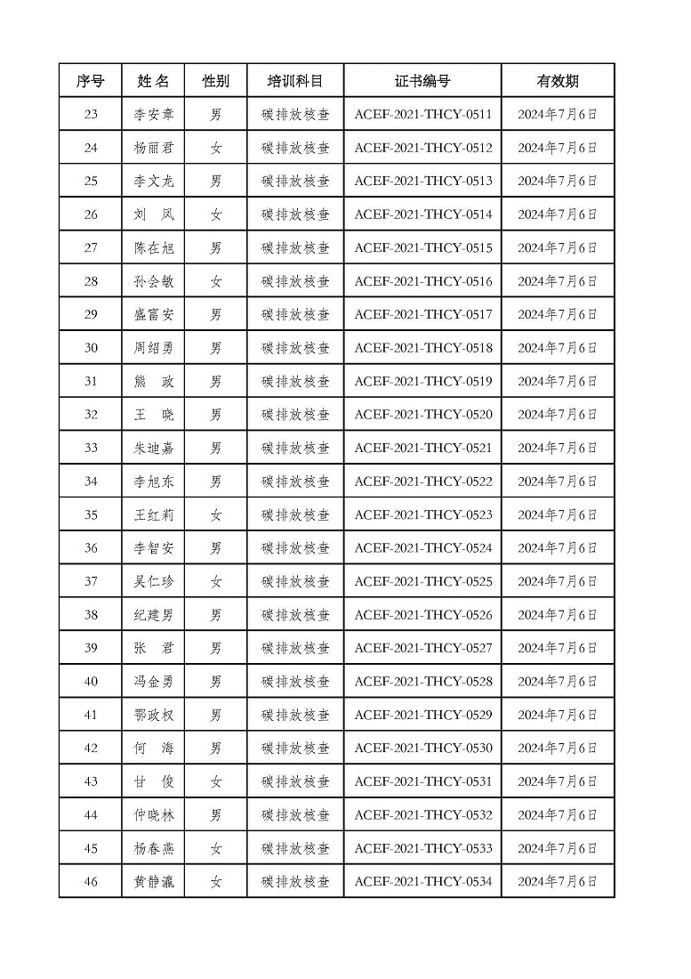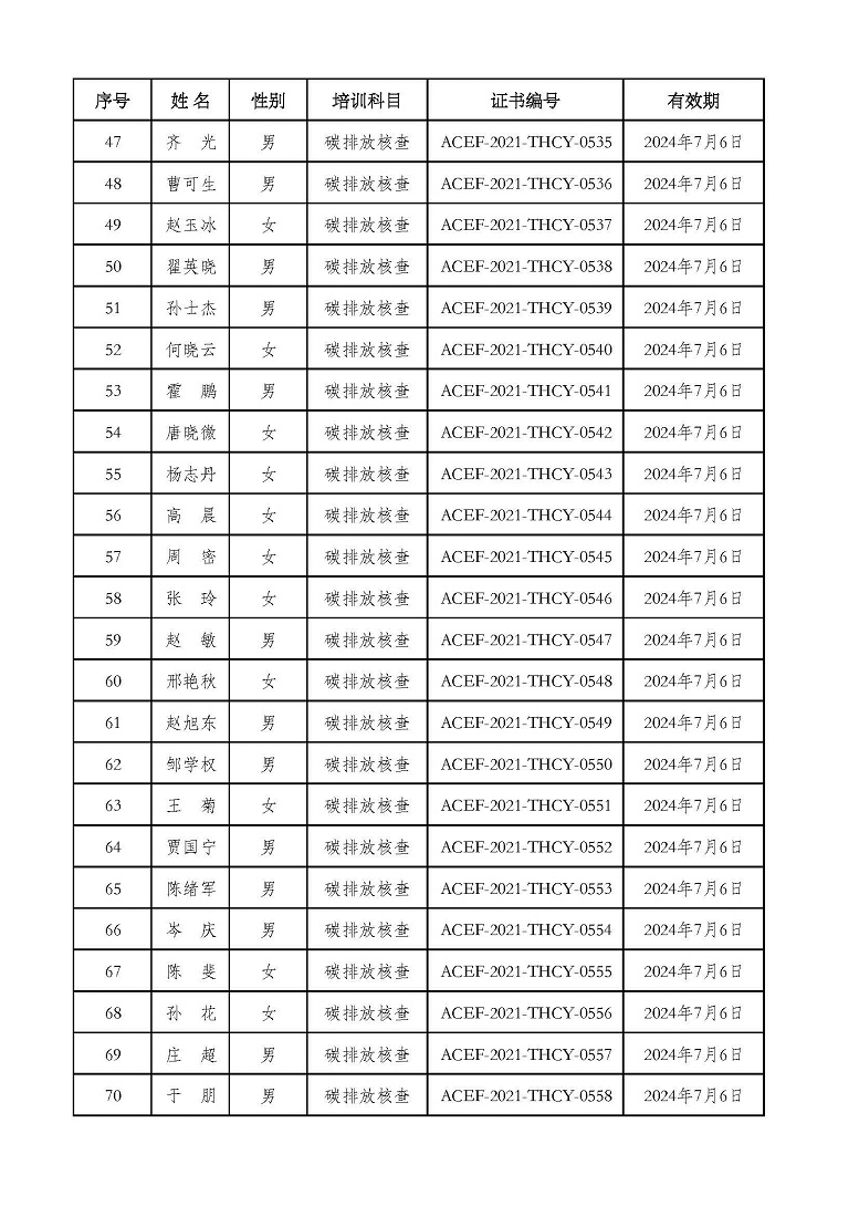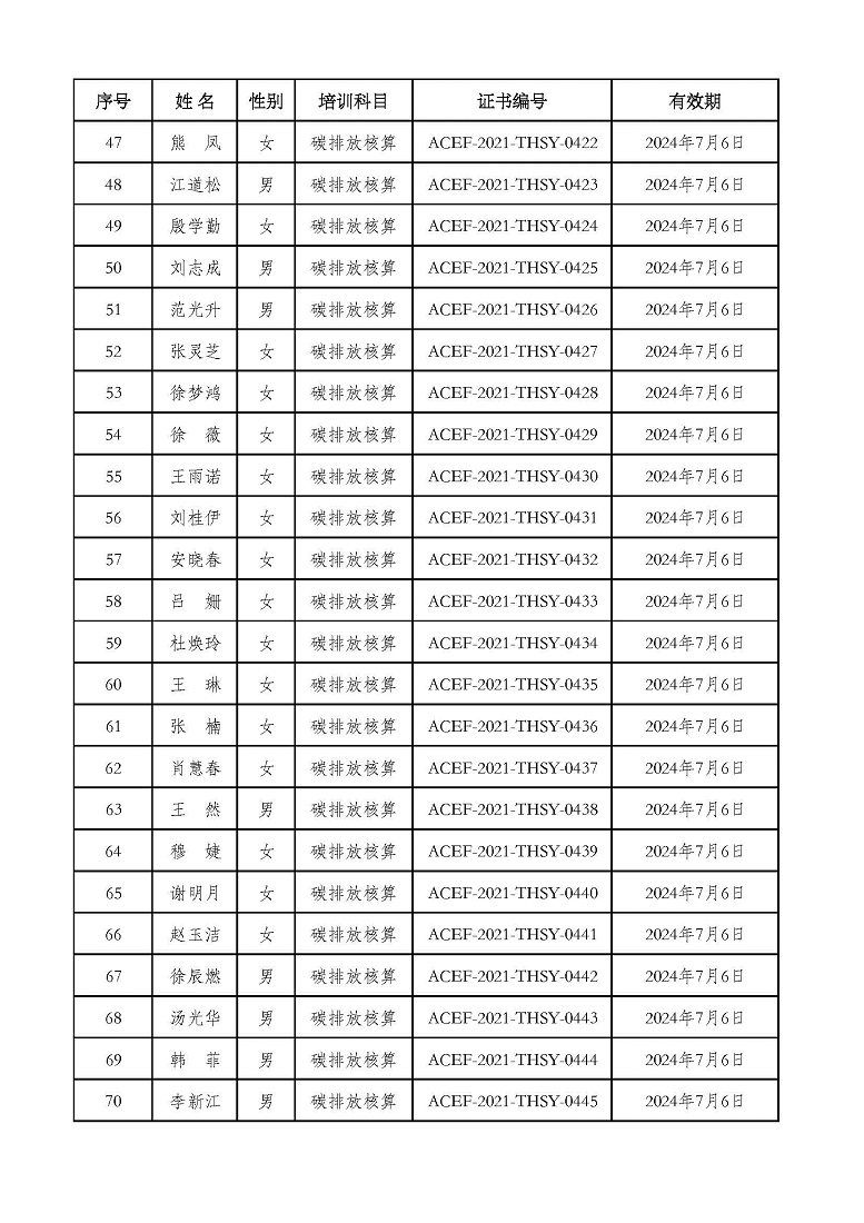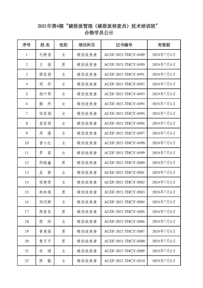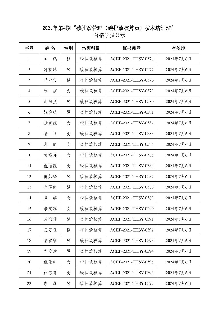 2021年第4期“碳排放管理(碳排放核算员)技术培训班”合格学员公示