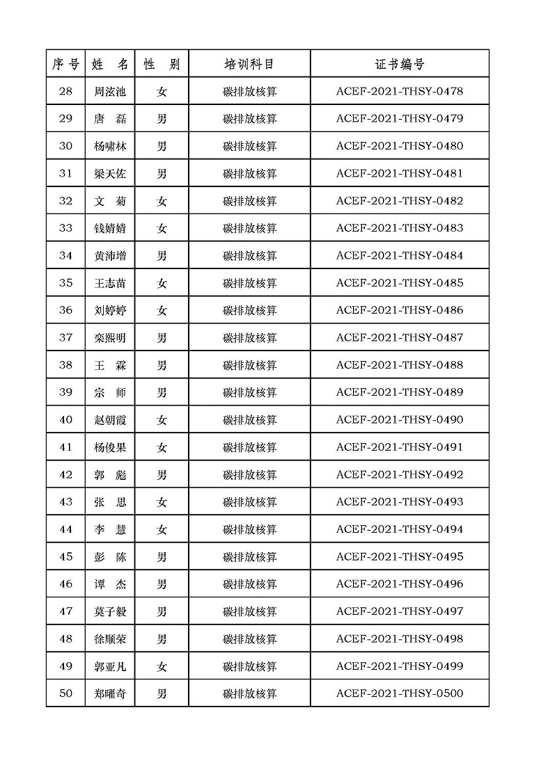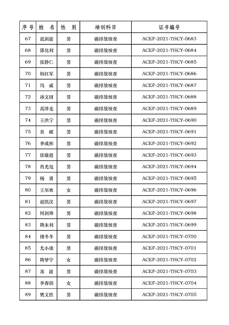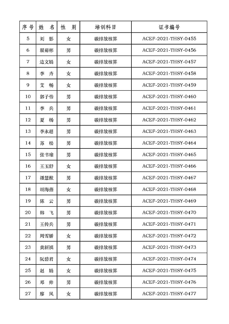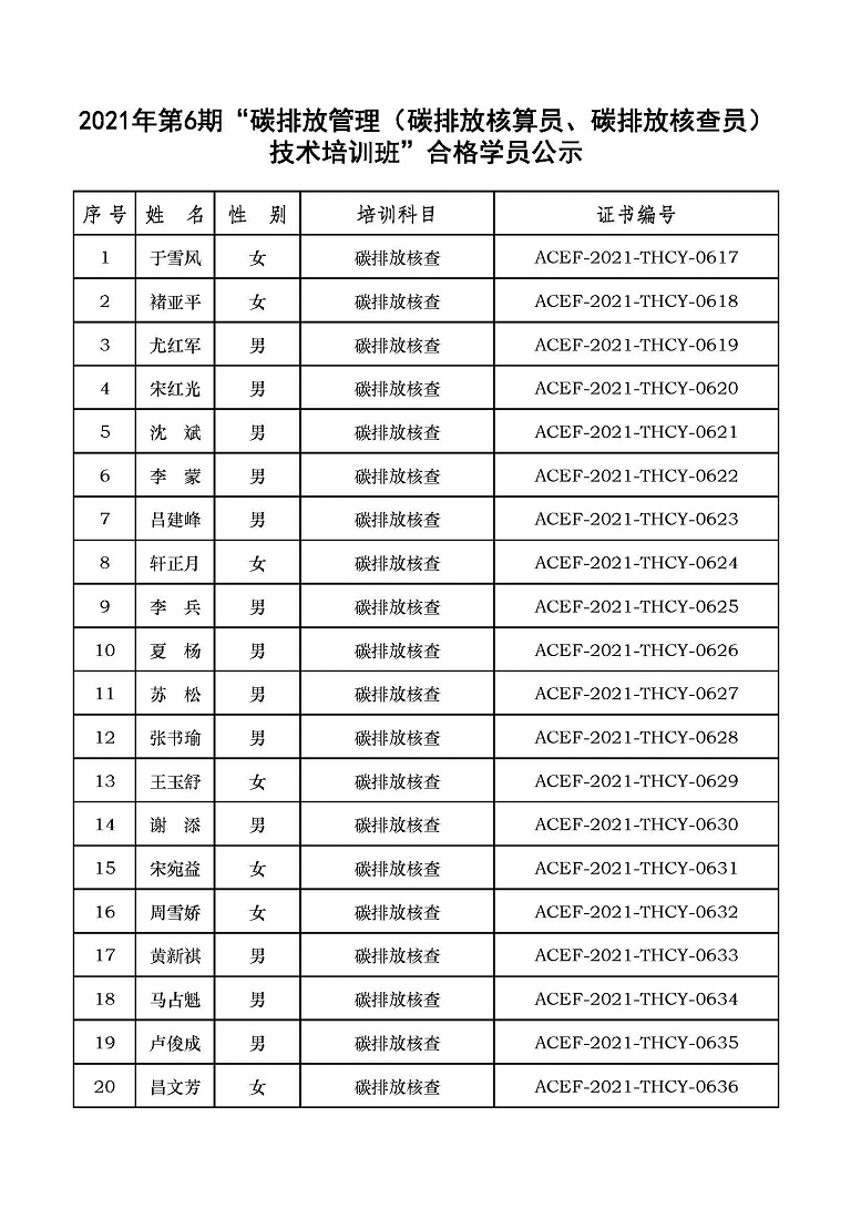 2021年第6期“碳排放管理(碳排放核算员、碳排放核查员)技术培训班”合格学员公示