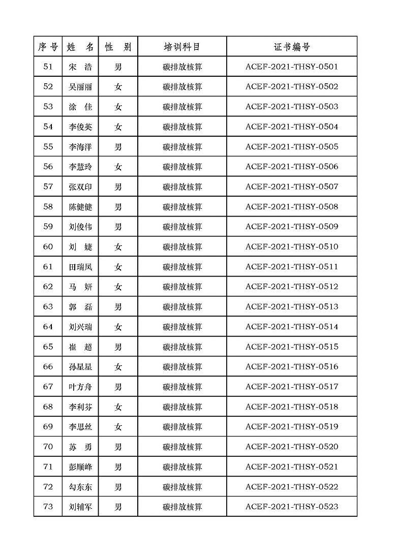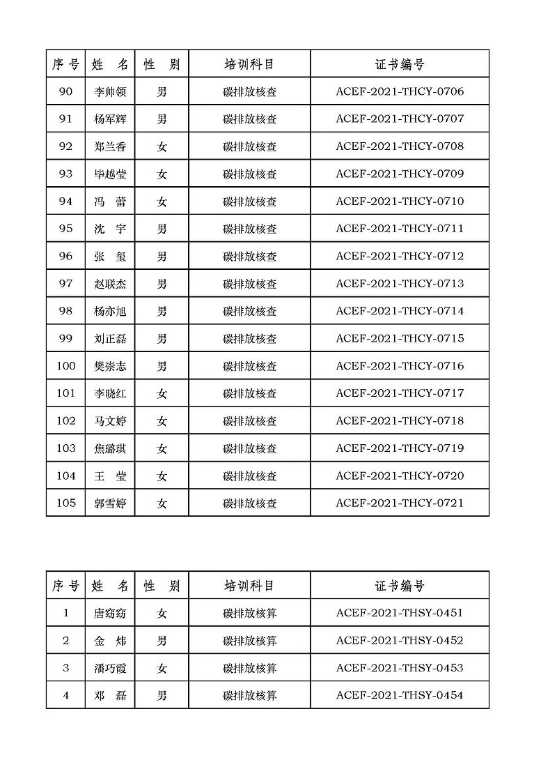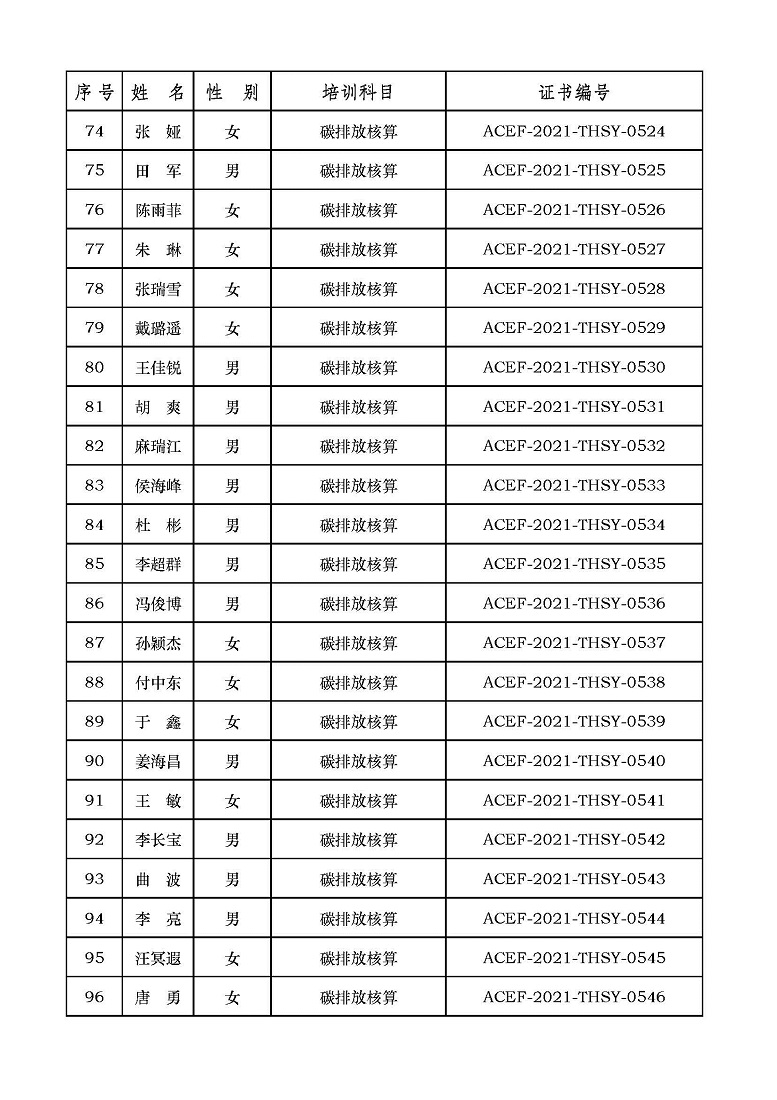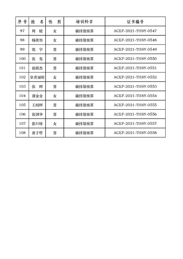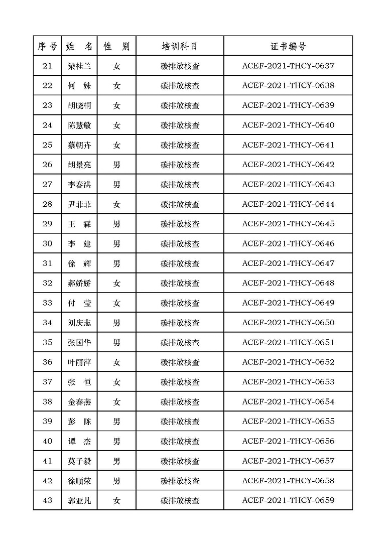 2021年第6期“碳排放管理(碳排放核算员、碳排放核查员)技术培训班”合格学员公示
