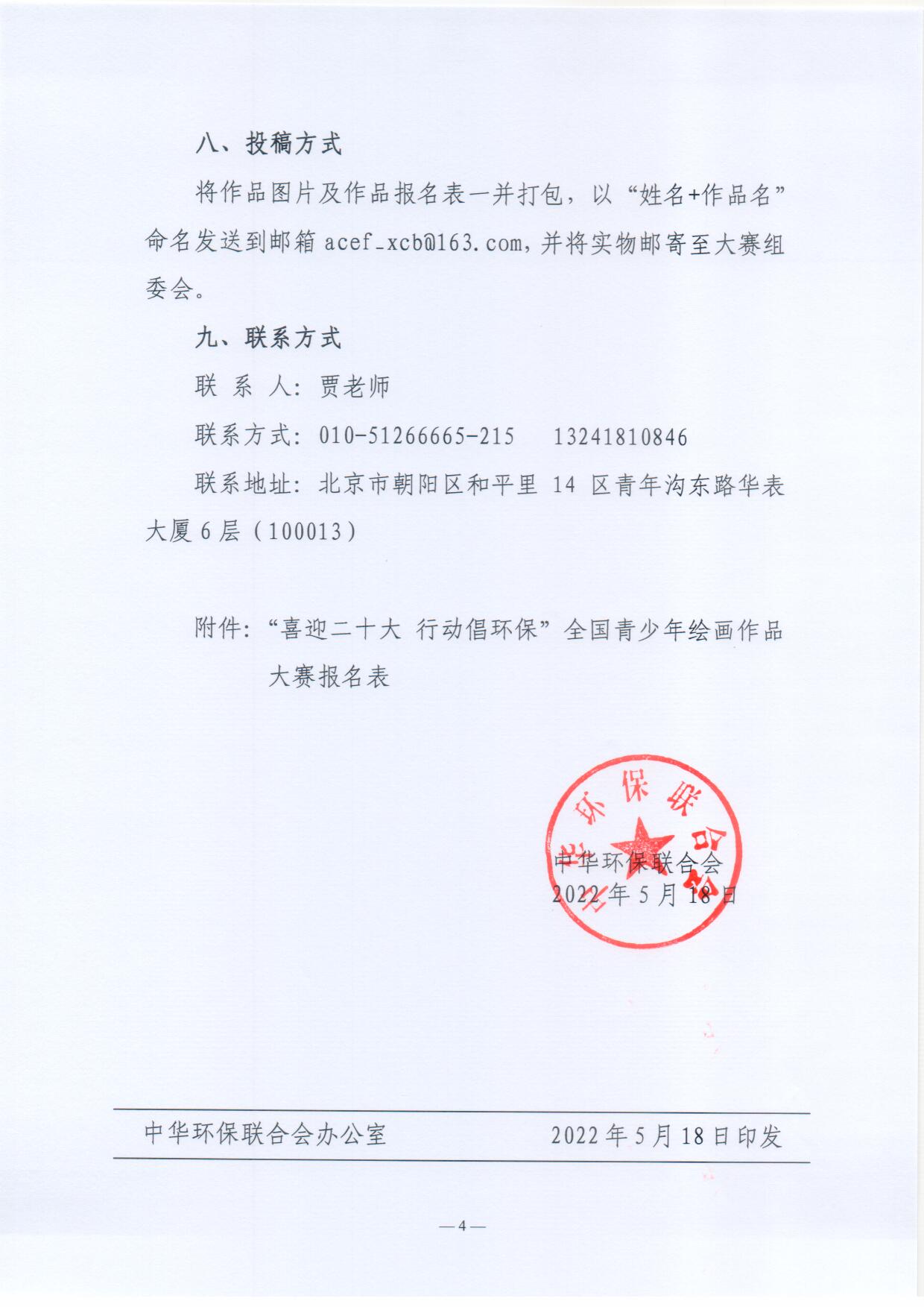 关于开展“喜迎二十大 行动倡环保”全国青少年绘画作品大赛的通知