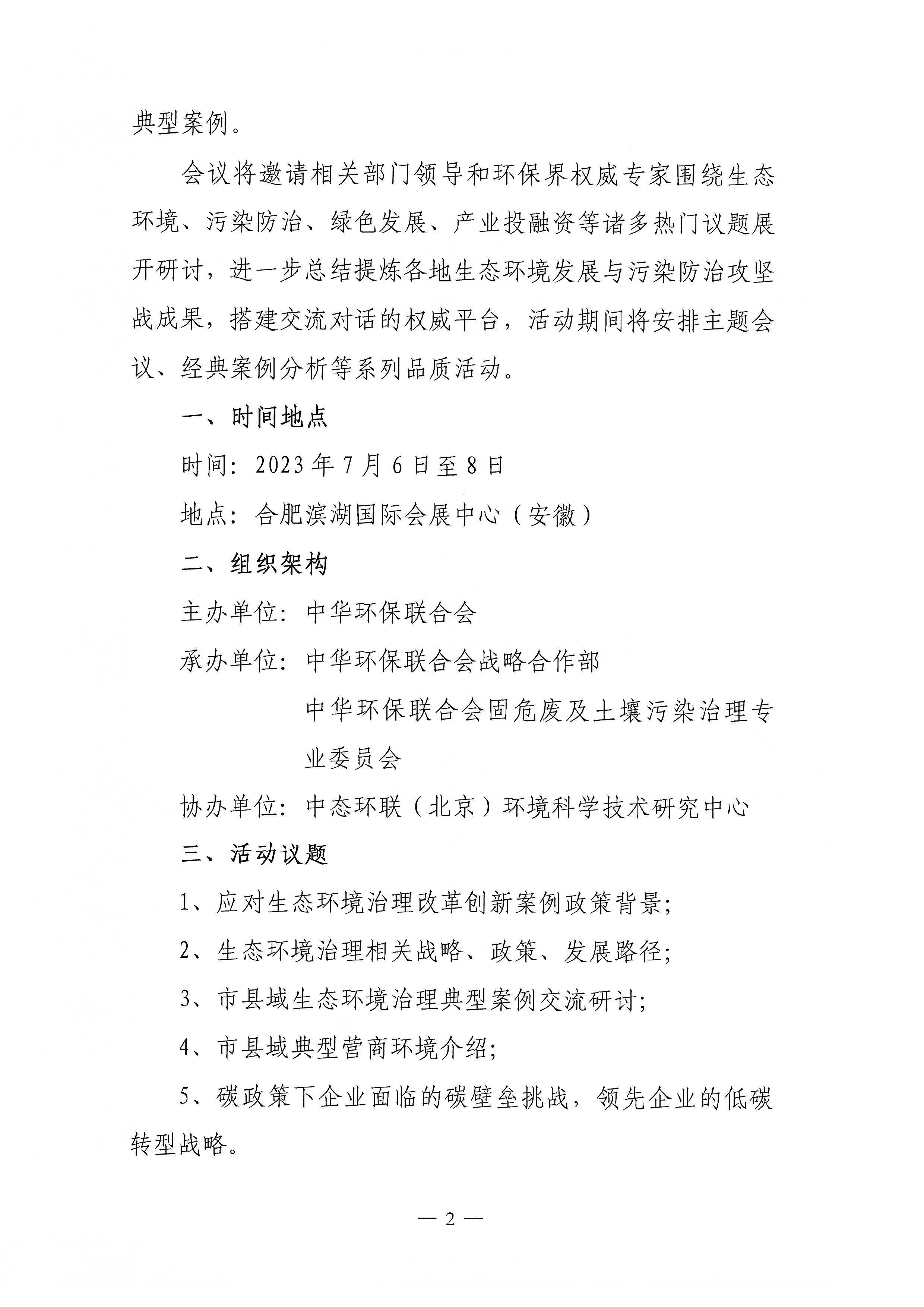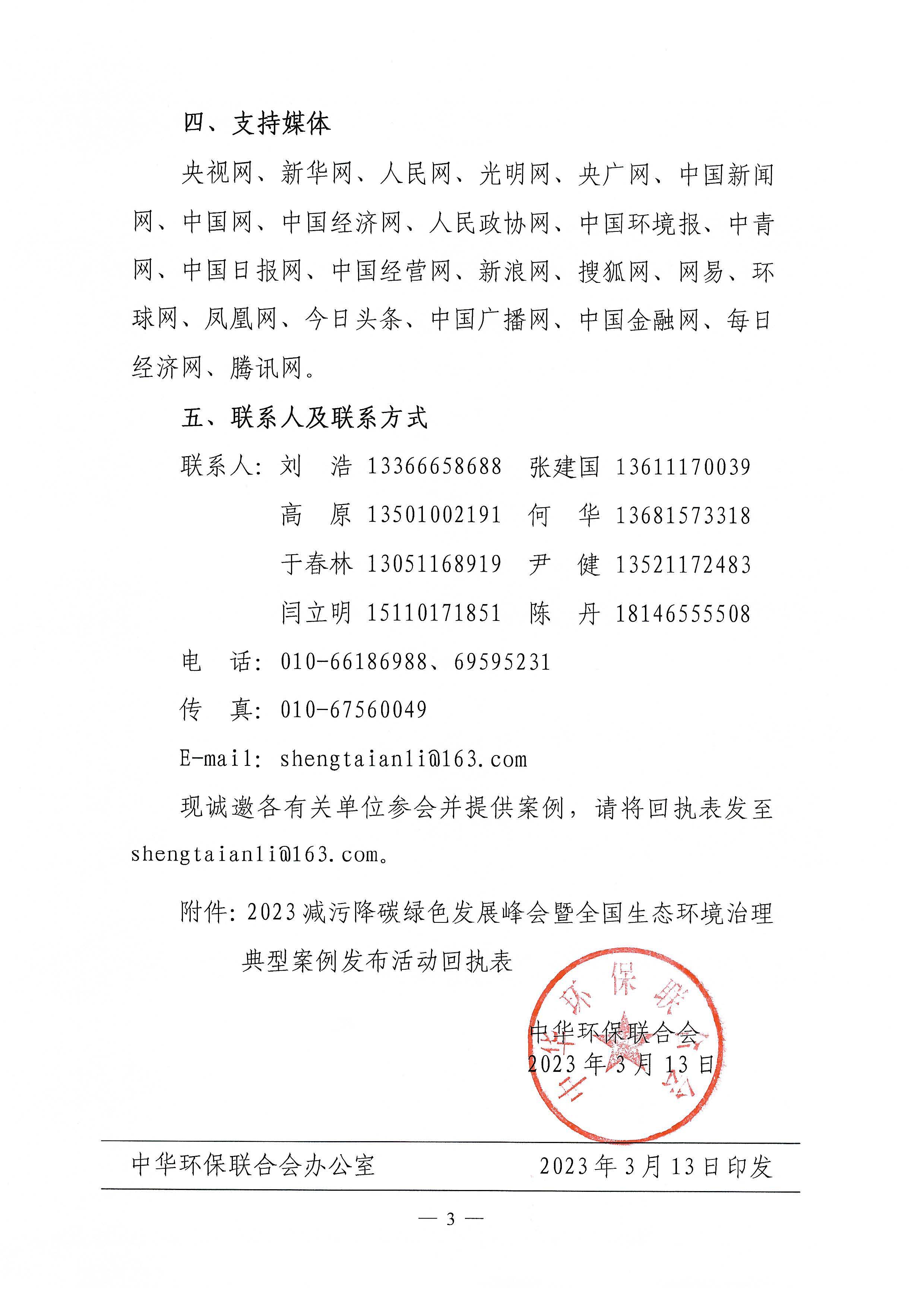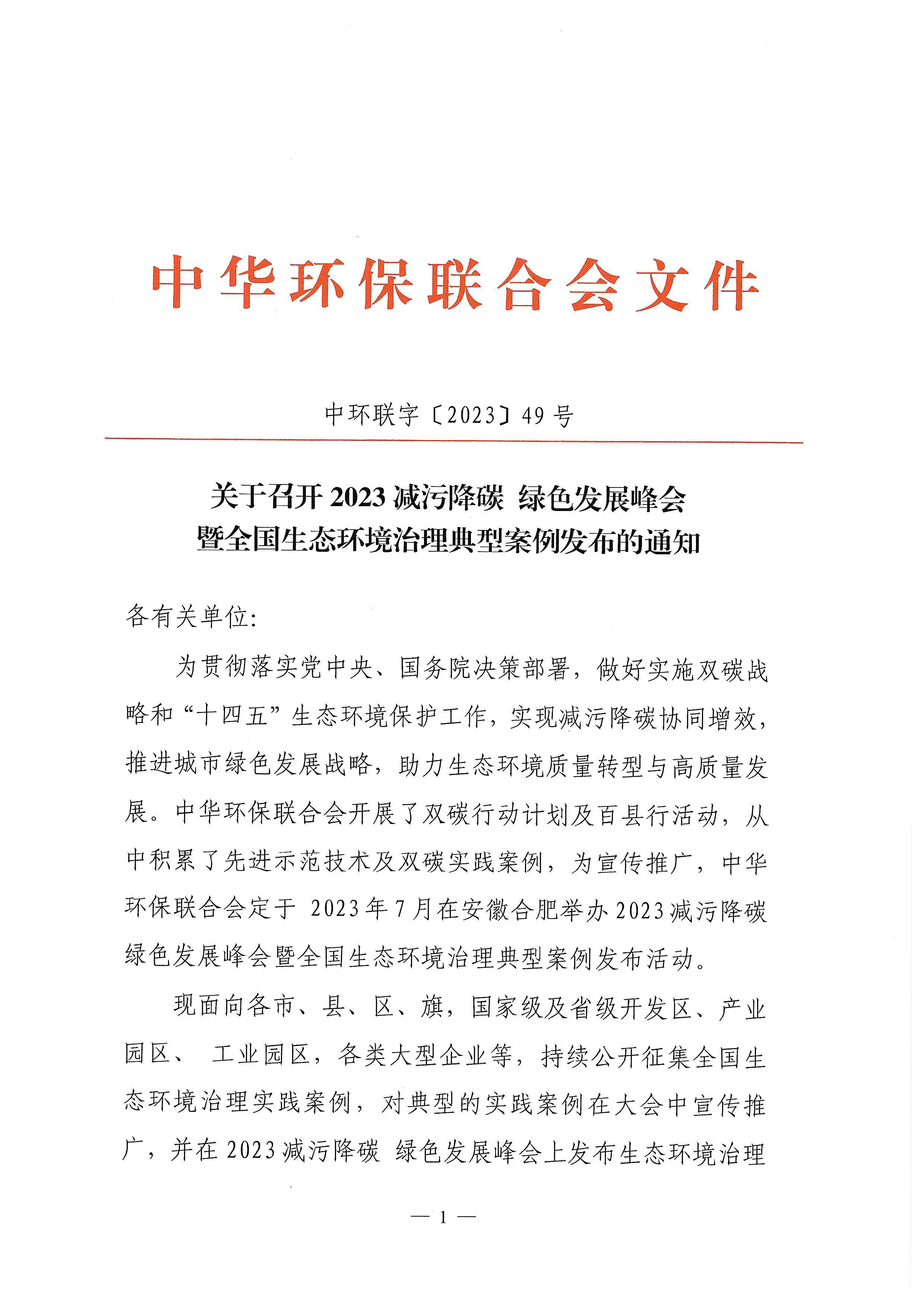 关于召开2023减污降碳 绿色发展峰会暨全国生态环境治理典型案例发布的通知