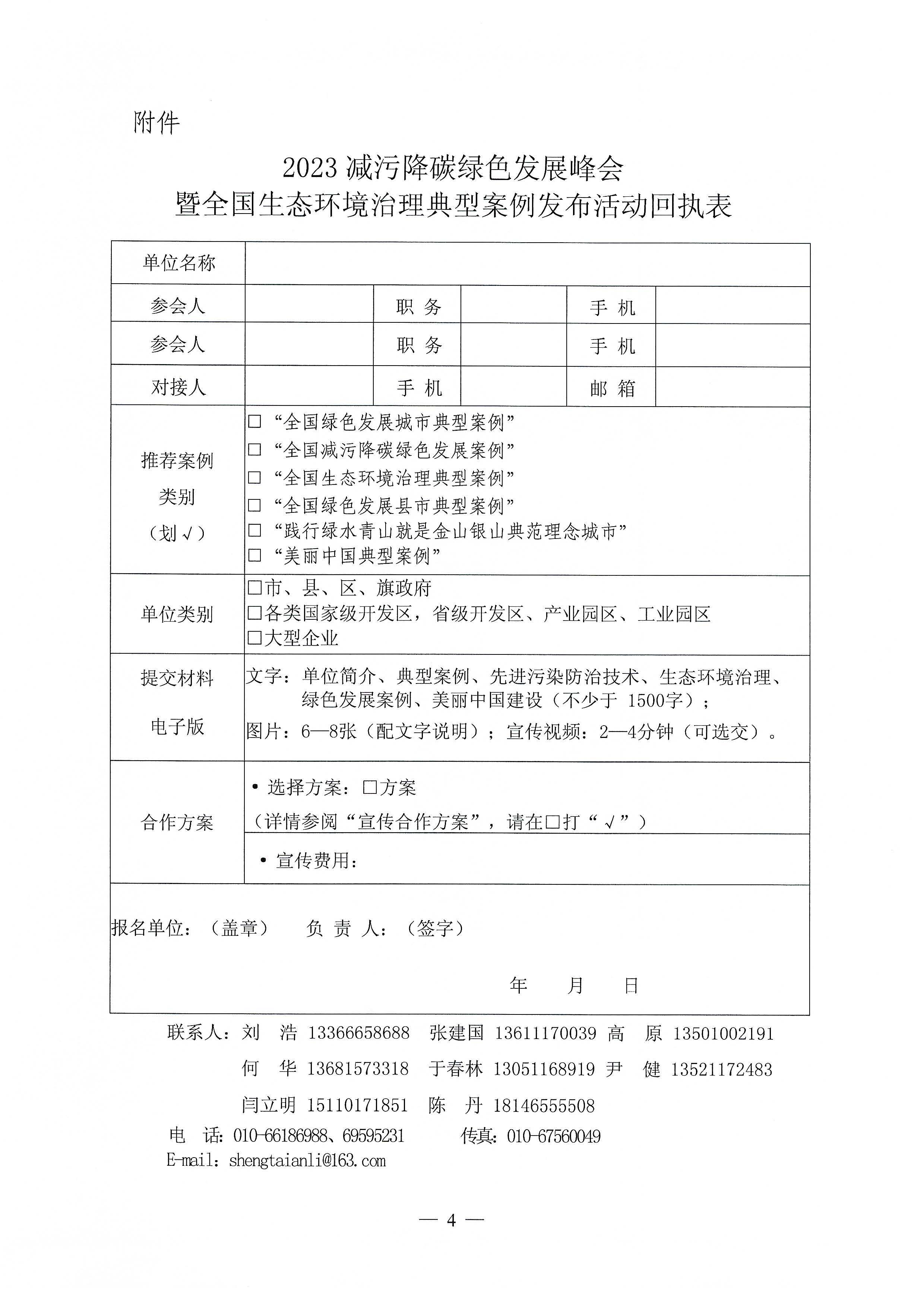 2023减污降碳绿色发展峰会暨全国 生态环境治理典型案例发布活动回执表