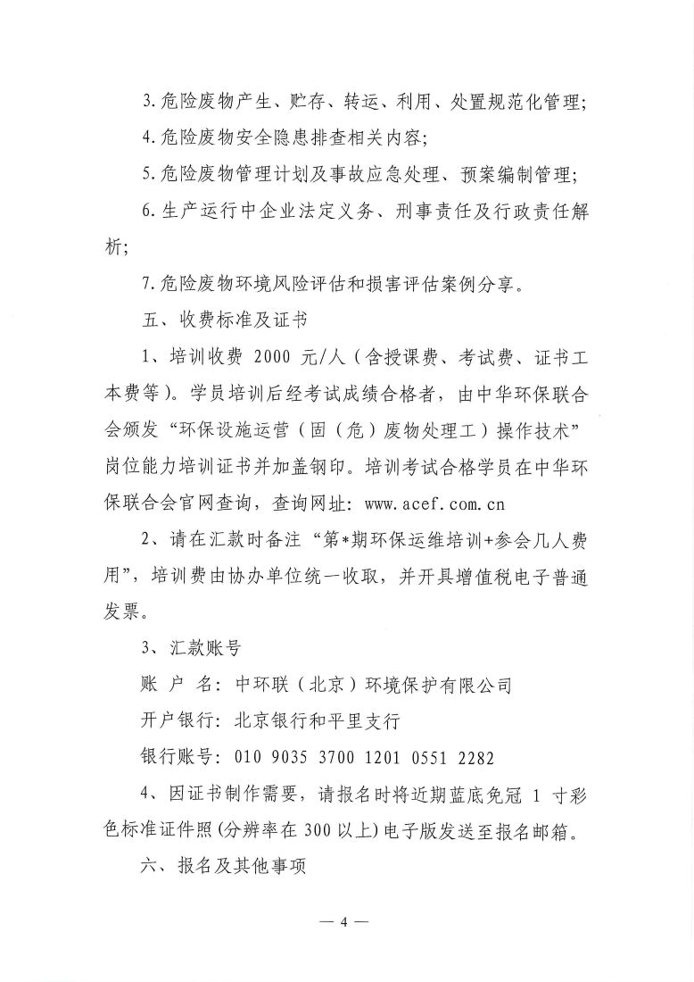 关于举办第11期“环保设施运营操作技术岗位能力”网络培训班的通知