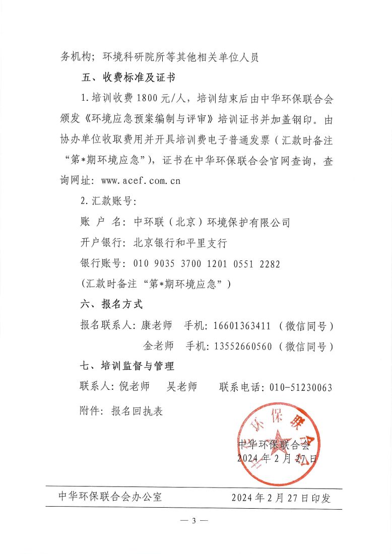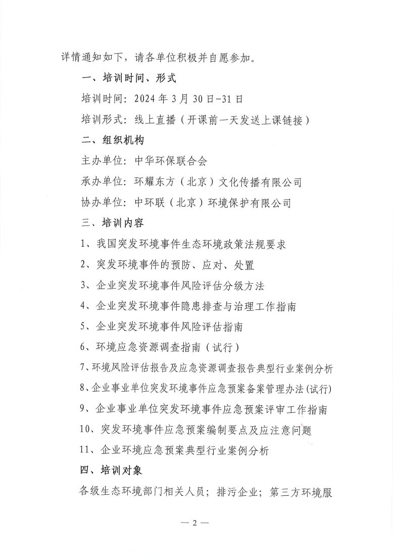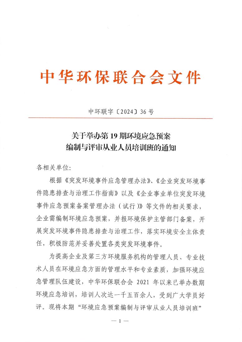 关于举办第19期环境应急预案编制与评审从业人员培训班的通知