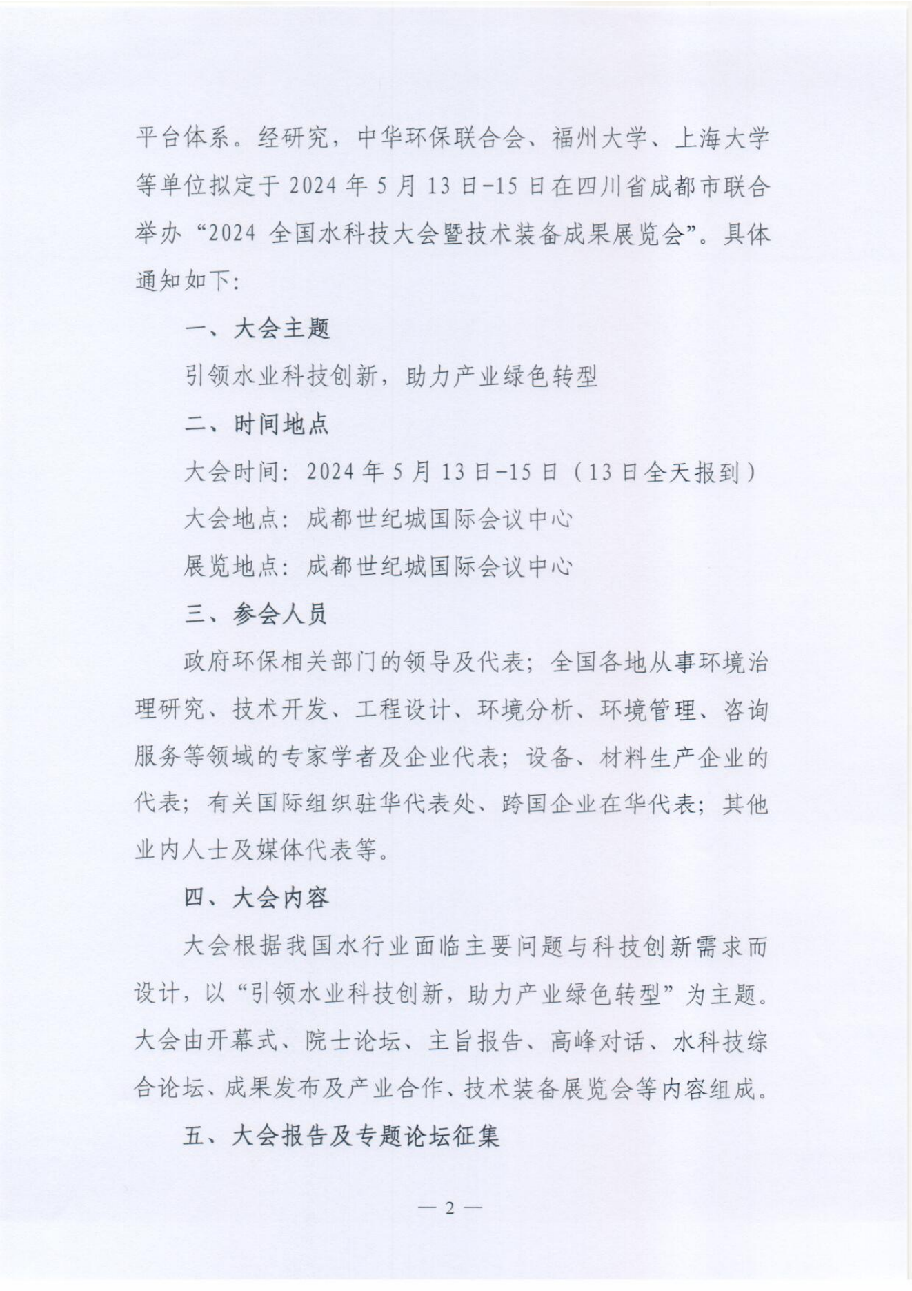 关于召开“2024全国水科技大会暨技术装备成果展览会”的通知
