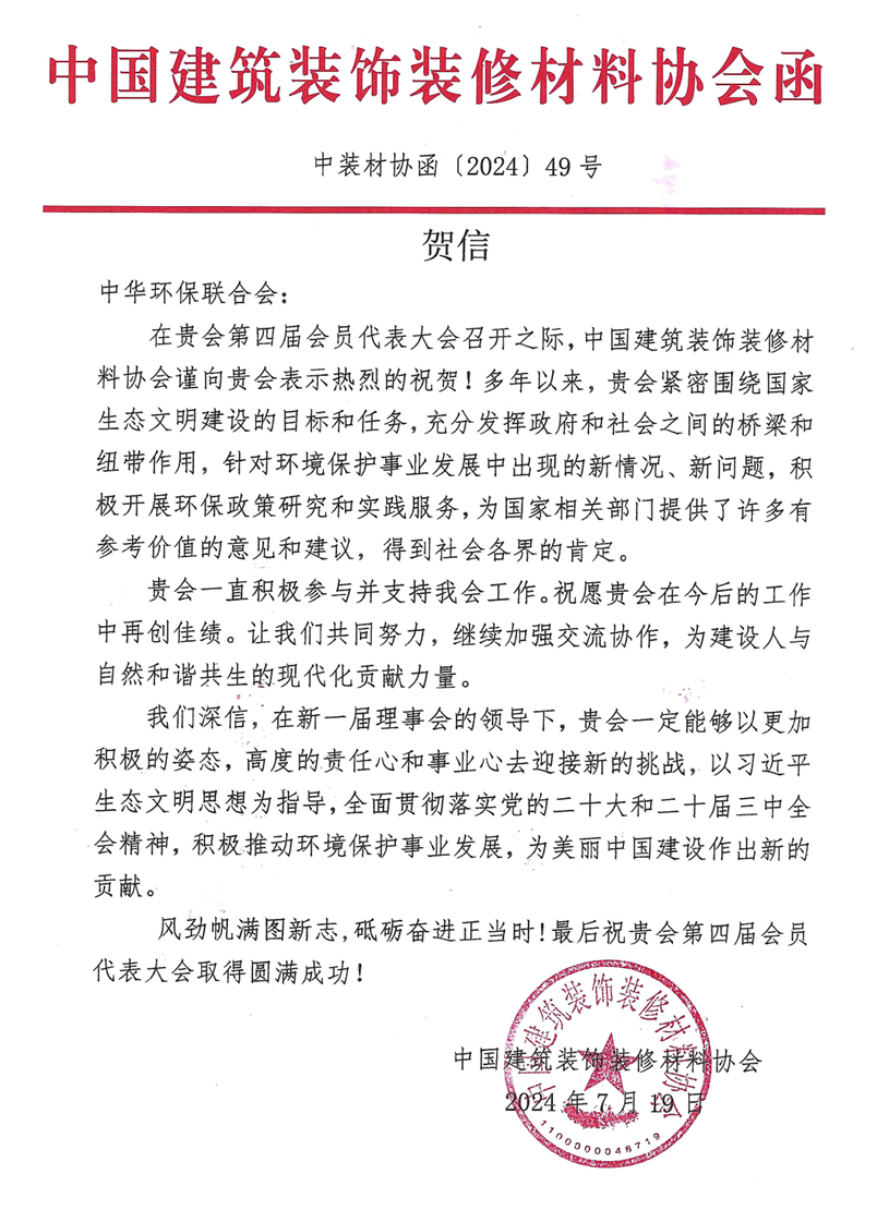 贺信 | 中国建筑装饰装修材料协会