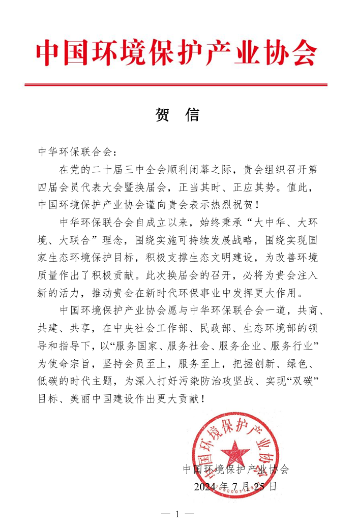 贺信 | 中国环境保护产业协会