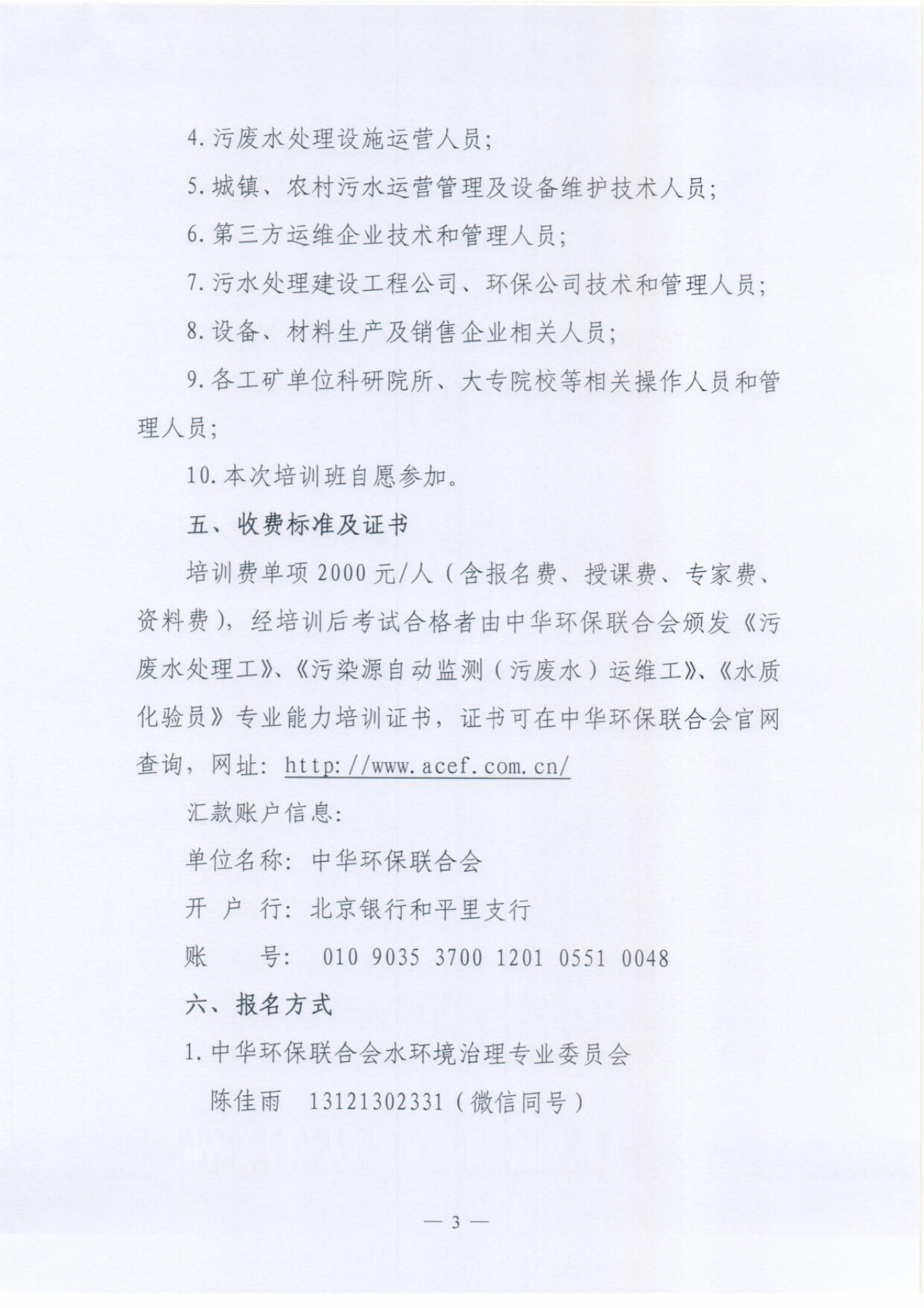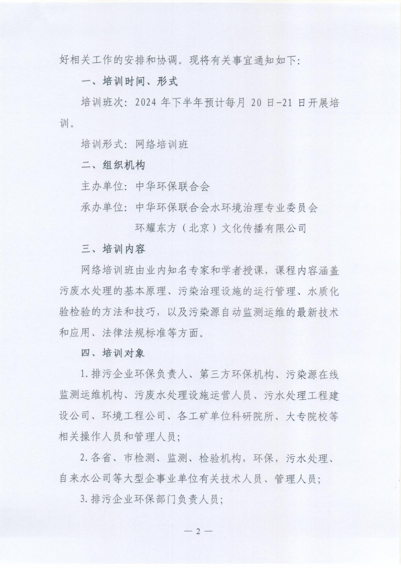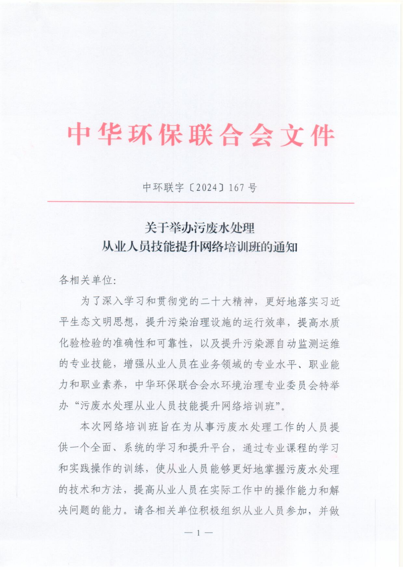 关于举办污废水处理从业人员技能提升网络培训班的通知