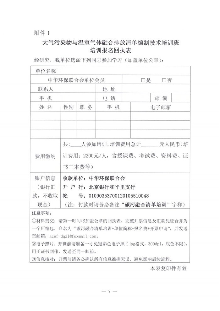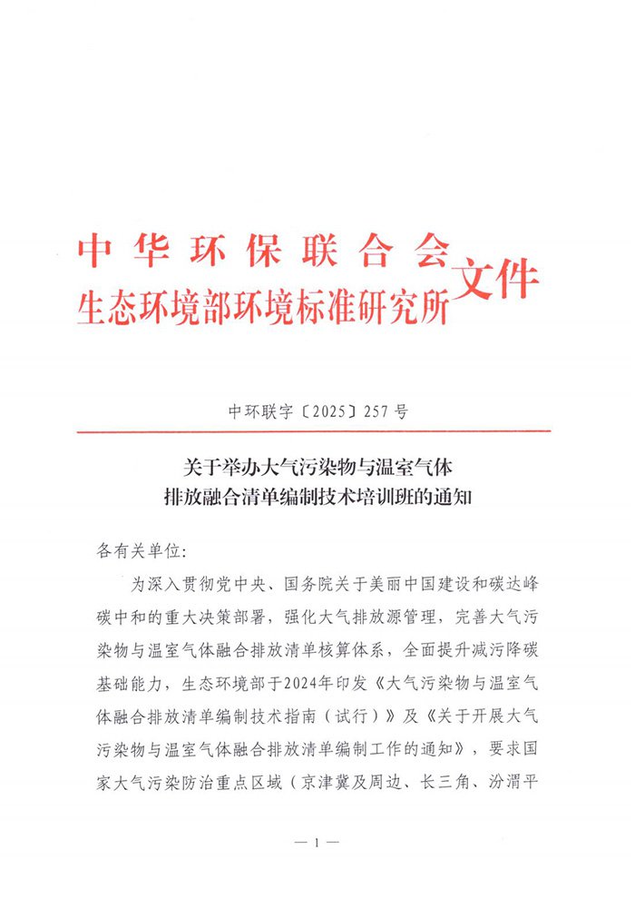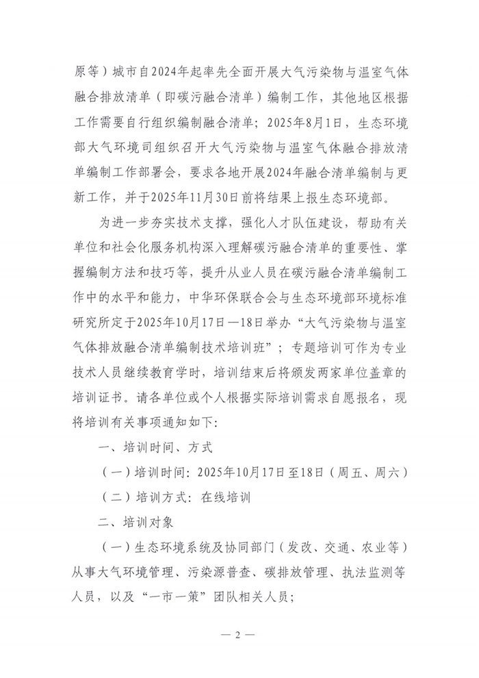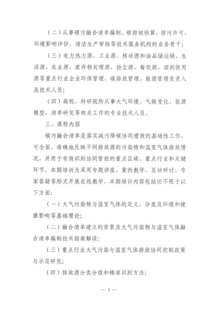 关于举办大气污染物与温室气体排放融合清单编制技术培训班的通知