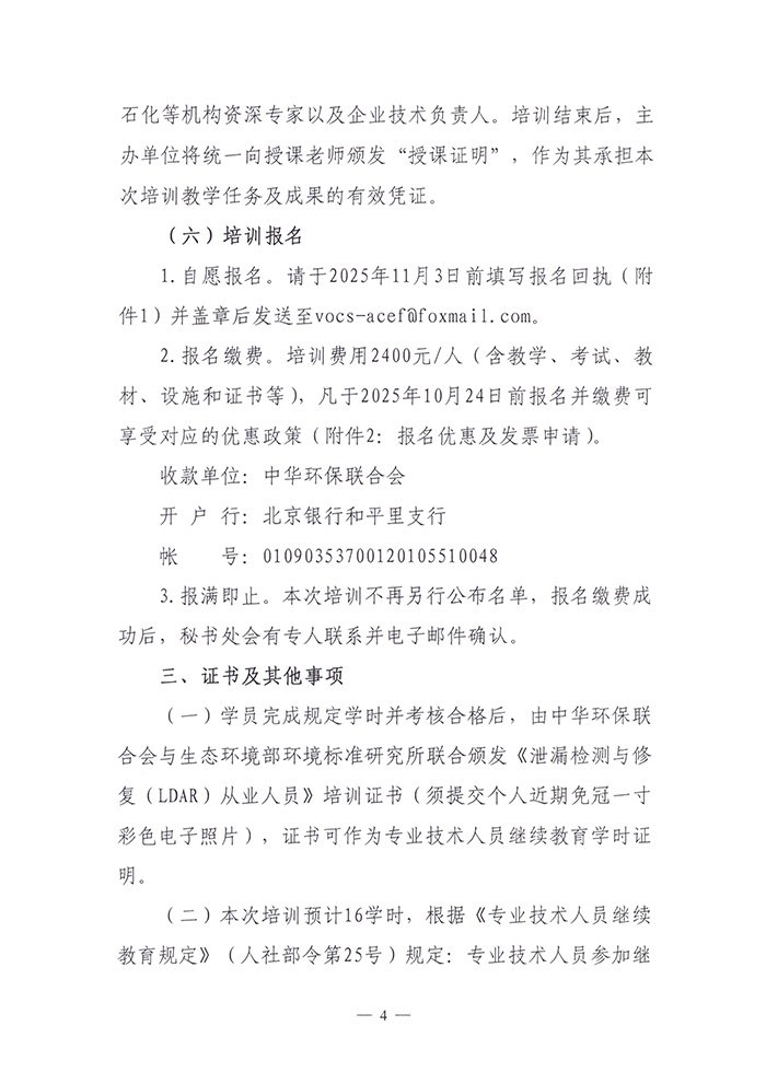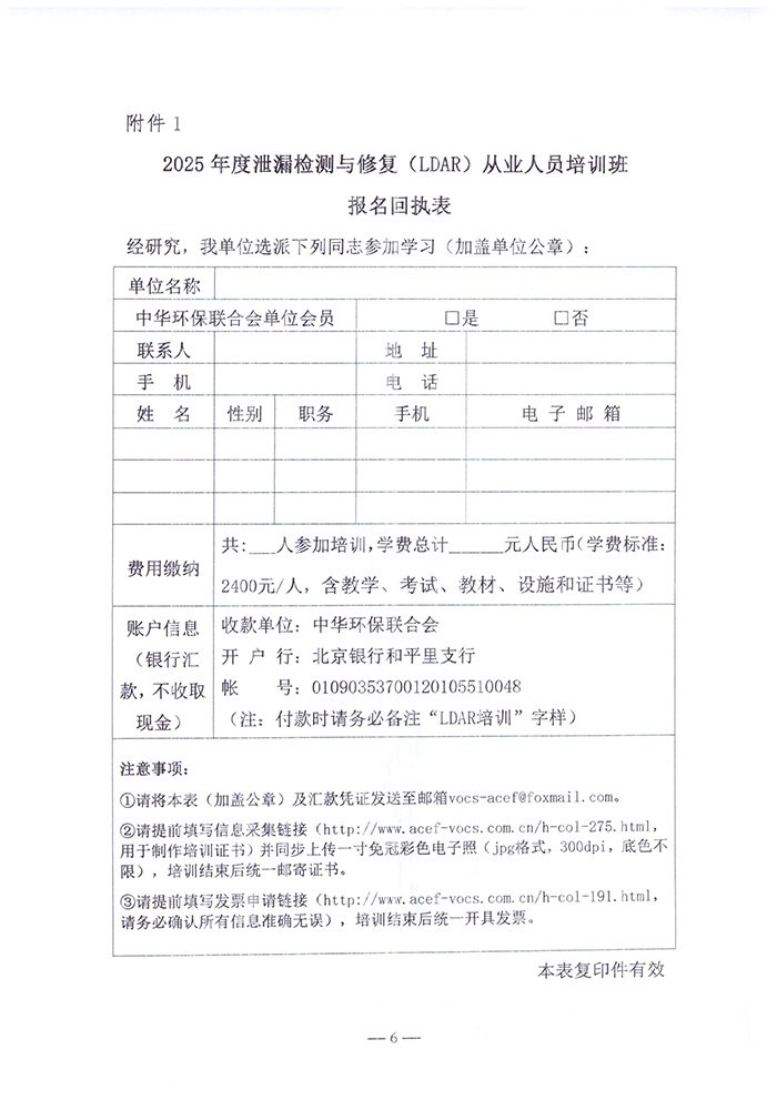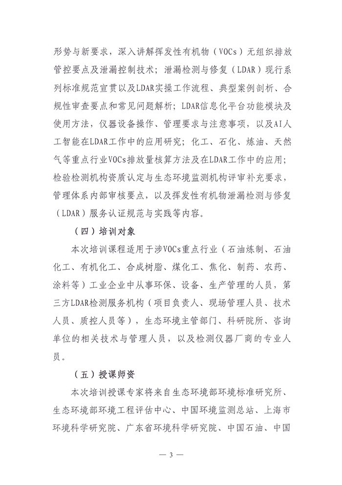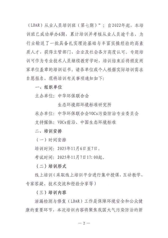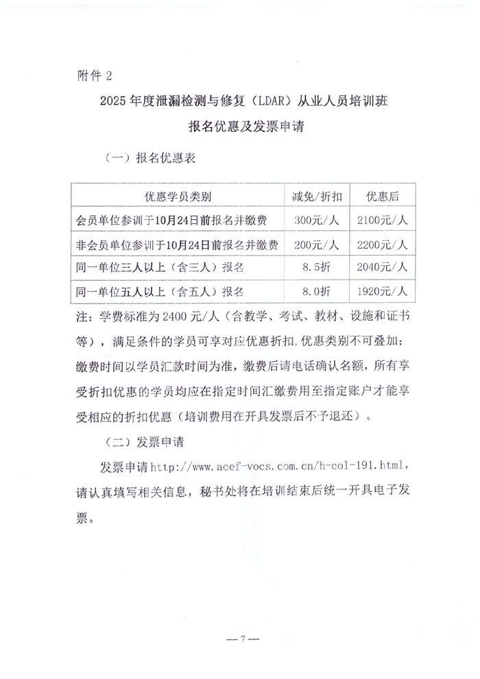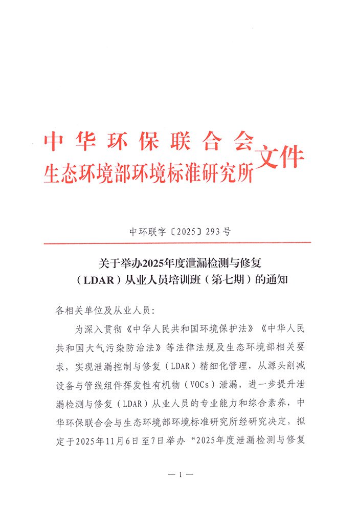 关于举办2025年度泄漏检测与修复(LDAR)从业人员培训班(第七期)的通知