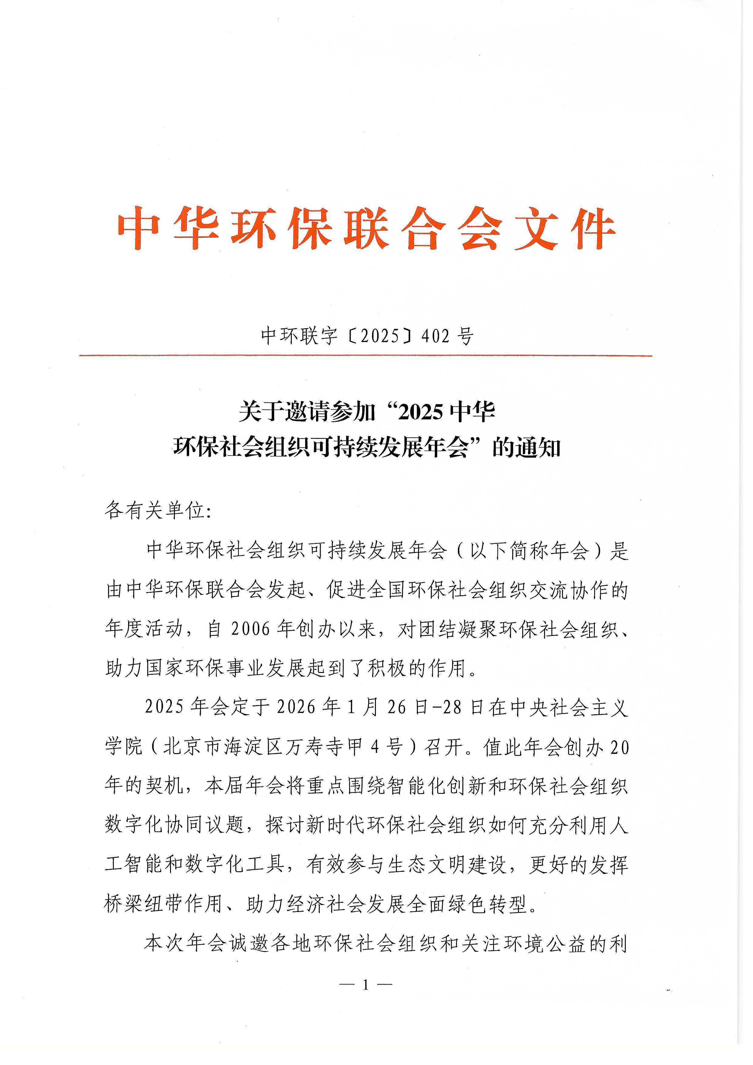 关于邀请参加“2025中华环保社会组织可持续发展年会"的通知
