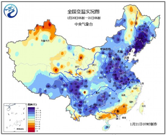 最新监测资料显示,今5时较昨5时相比,中东部大部分地区气温下降明显。其中,华北、黄淮以及江淮等地气温下降4~6℃,部分地区降幅超过8℃,合肥的气温更是下降了11℃。另外,吉林中南部、辽宁中东部等地气温也下降了10~18℃。预计今天白天到夜间,上述地区的气温将缓慢回升。