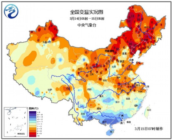 预计今天白天,我国大部地区气温继续回升。其中,北方大部地区将升温3~6℃,部分地区将超6℃,而南方大部地区的气温也将上升4℃左右;除东北地区外,中东部大部最高气温超过16℃,其中华北中南部、黄淮、江淮、江汉、江南北部及陕西、云南等地的最高气温均将超过20℃。并且上述地区的降水较弱,天气晴朗,颇有春天的味道,十分适宜大家外出赏春。