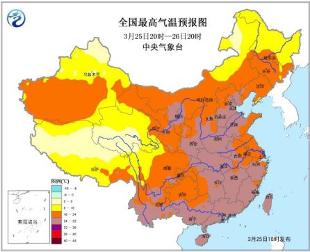 气温方面,目前我国大部地区仍处于升温状态。明天白天,从西北地区东部、华北南部、黄淮中西部一直到江汉、江南、华南等地,最高气温均在24℃以上。其中,天津、西安、郑州等省会级城市最高气温将达27℃。
