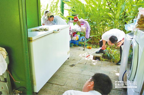 消防员在民宅捉眼镜蛇。台湾《中国时报》图
