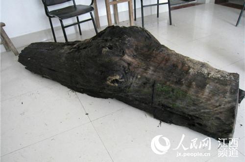 近日在武宁县船滩镇辽田村辽田河发现的一根疑似乌木