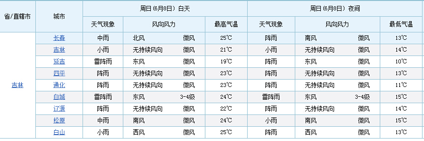 人民网北京6月5日电(杨翼)据中央气象台最新消息,高考期间吉林省长春、吉林、延吉、四平、通化、白城、辽源、松原和白山等多数城市为小到中雨、阵雨,局地有雷阵雨,提醒考生和家长注意出行。